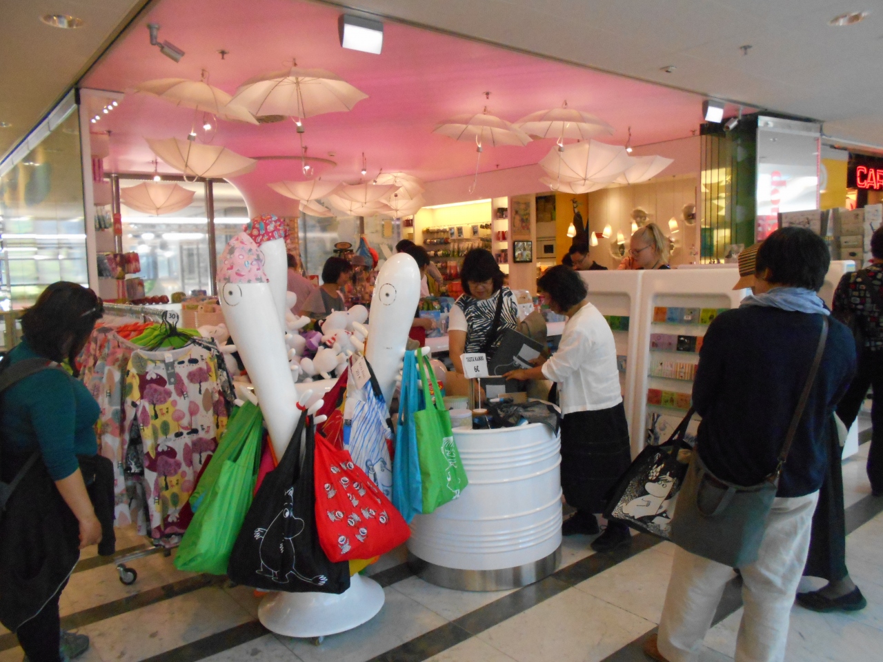 フォルムは有名な専門店が入るショッピングセンターで場所はすぐわかるのですが、フォルもの中でこのムーミンショップにたどり着くのに時間を要しました。店内もよくショップが入れ替えするのか、マリメッコもありました。