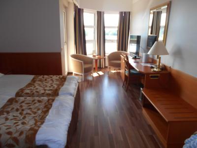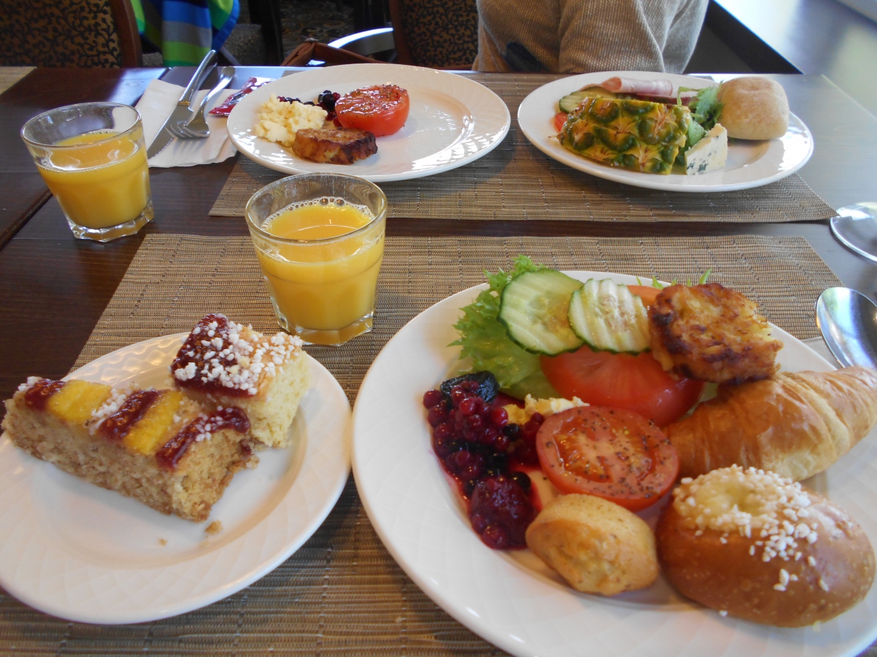 お部屋はクローゼットが広く3つの部屋兼用の広いバルコニーがついていました。部屋からも朝食会場からも見える景色はすべて素敵でいつまでも暮れない夕方に森のシルエットが浮かんでいました。