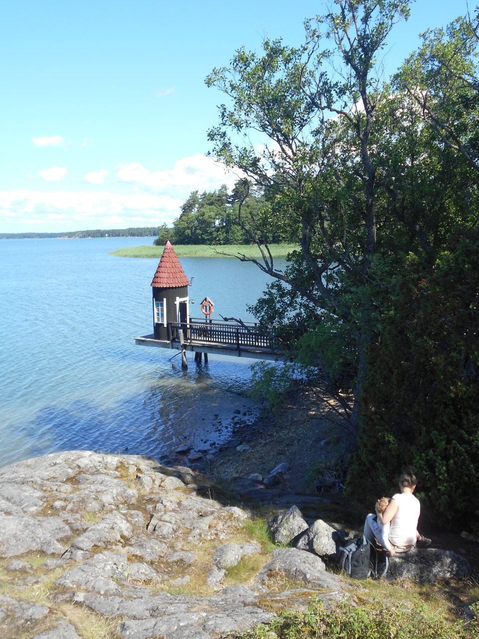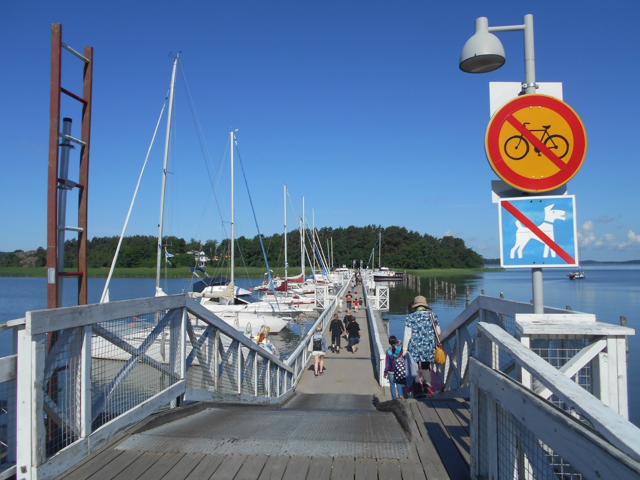 お天気も良く暑くなりそうだったので無駄な体力を使わないためにスパホテル前からムーミントレインに乗り込みました。往復7ユーロ。日本人だけ片道5ユーロがある。割高だけど乗るなら往復乗ってくださいよ ということなんでしょうね~。しかも日本人はムーミンワールドからそのまま移動する人が多いのね。 でもでもこれがバカにできなかったのです。大通りを通らず田舎道のような小さい海沿いの道を通ってくれたり空気が澄んでいてとっても満喫しました。歩いたら20分ということらしいけどこのトレインも結構長く走ってくれましたよ。