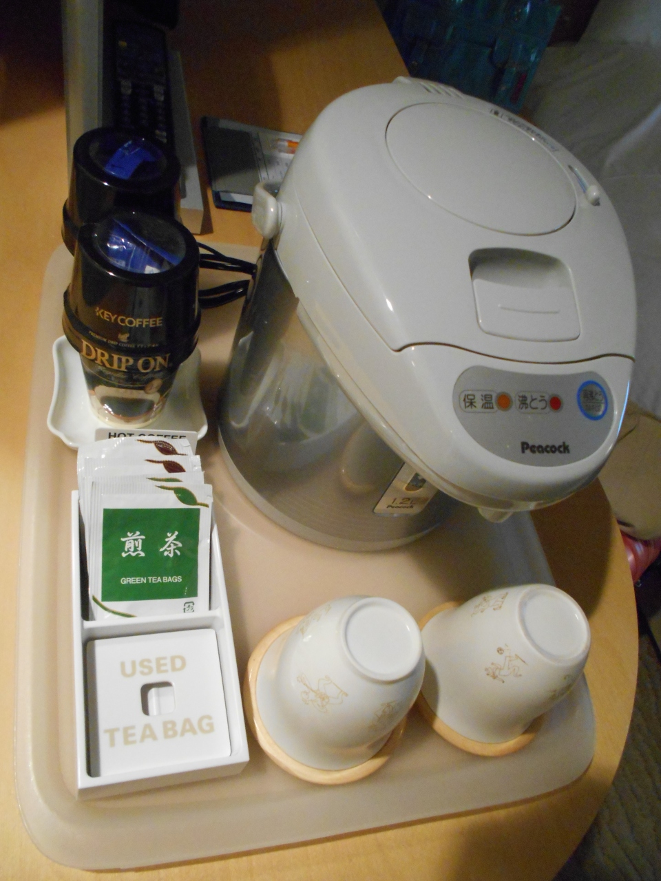 部屋は広いとは言えませんがティーセット(煎茶とほうじ茶)、リセッシュ、加湿空気清浄器、一人1本ずつミネラルウオーターがありました。お風呂は狭いこともなく使い勝手が良かったです。冬はコート類もあるのでもう一つハンガーがあるといいと思いました。
