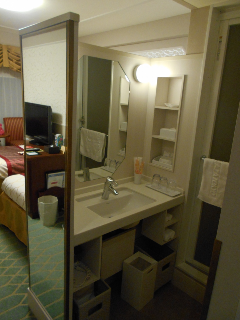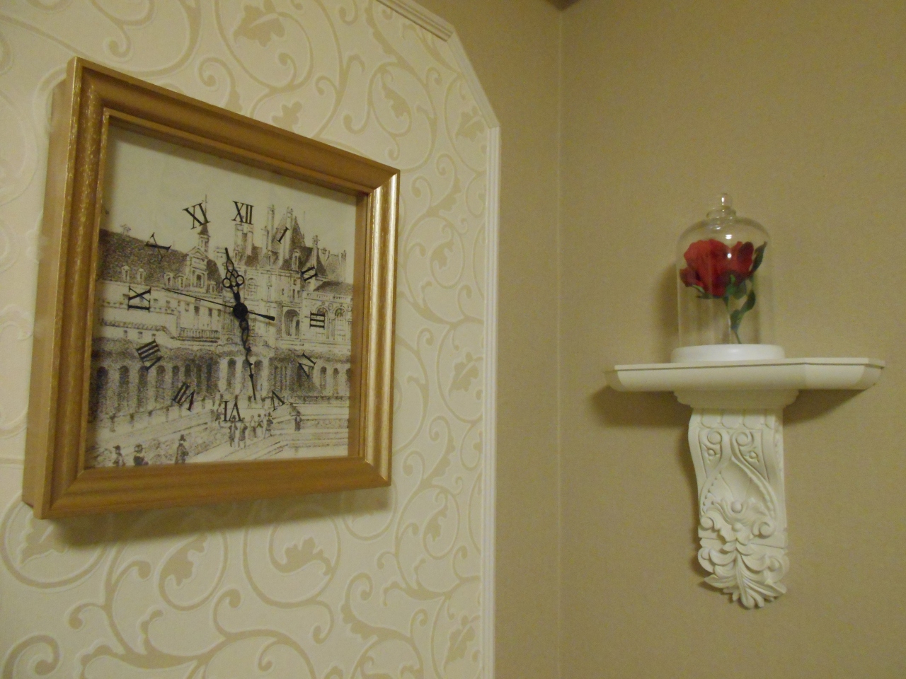 よく利用させてもらいます。今回はキャッスルルームでした。お部屋はベルのガラスケースに入ったバラの花がありました。お馴染みバスタブと洗い場が別のお部屋でお家にいるようにお風呂に入れます。ミネラルウオーターのサービスがありましたが緑茶だけでコーヒーがなかったのが少し物足りなかったです。また消臭スプレーがなかったのが意外でした。 廊下にはガラスの靴やランプなどプリンセスを思い起こさせるものが置いてあり端から端まで見てしまいました。