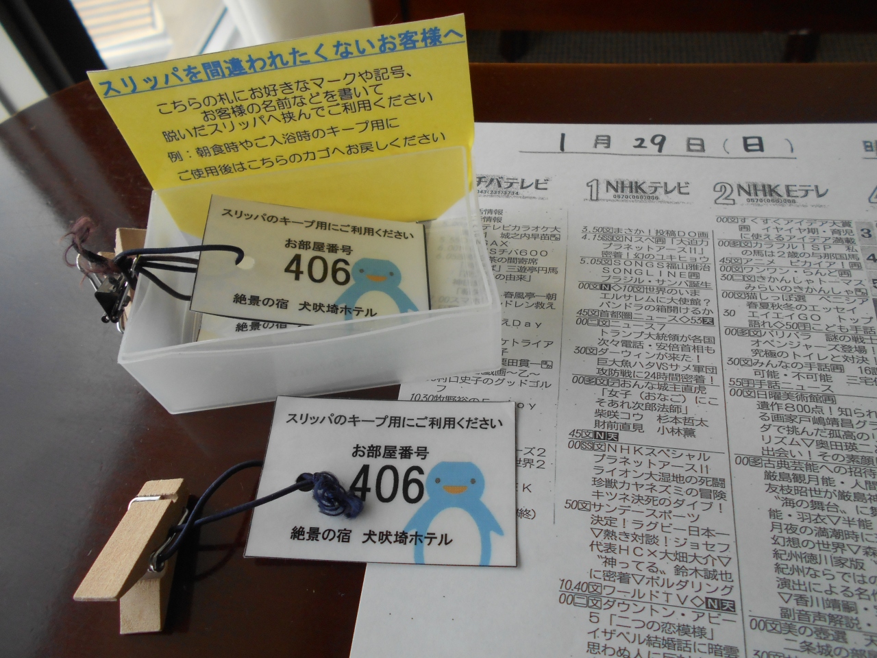 大浴場でスリッパが行方不明になることはよくありますが、部屋番号の書かれたクリップが置いてありよかったです。