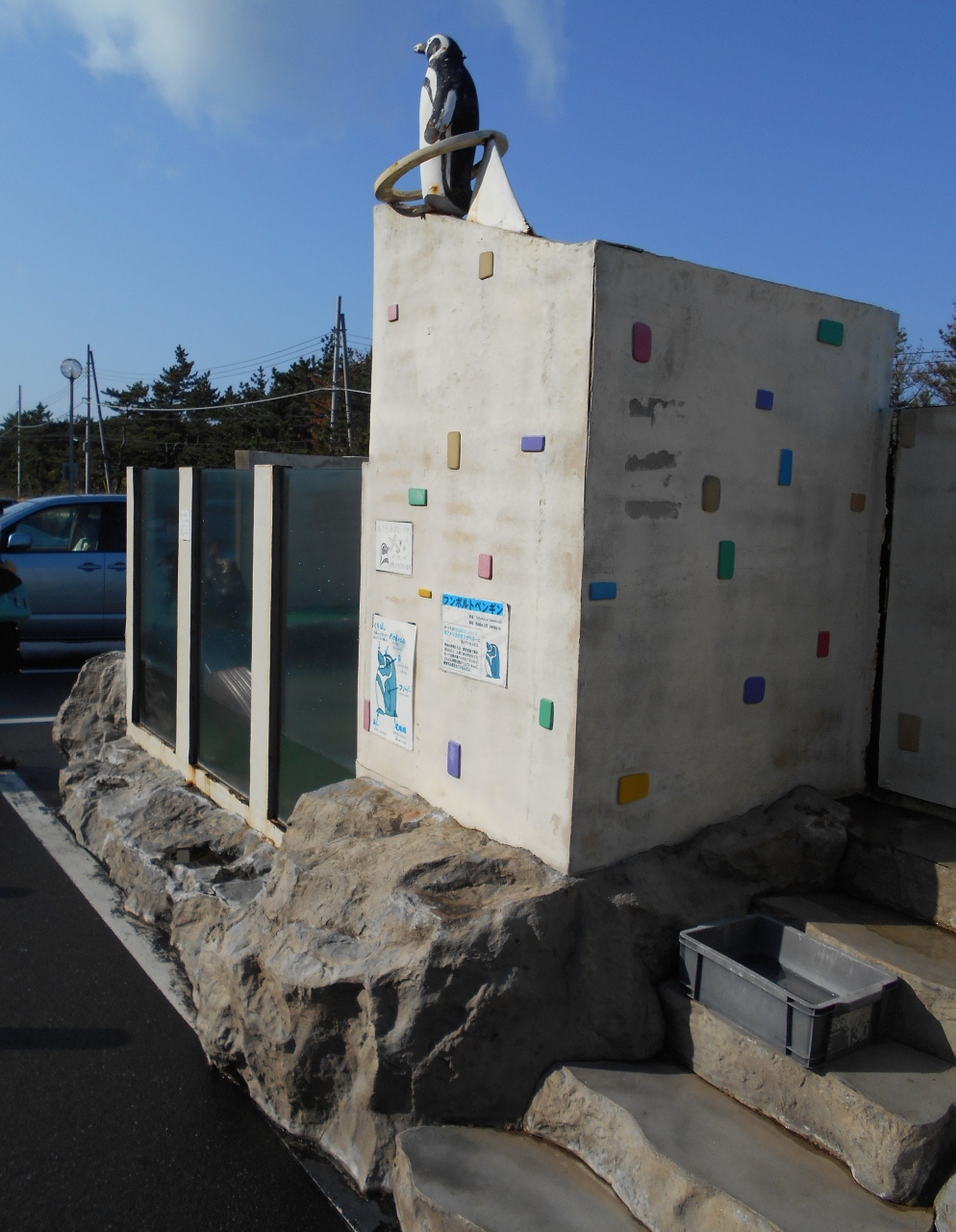 銚子電鉄の犬吠駅から海風に吹かれながら歩いてもそんなに遠くありません。4羽のペンギンが小さな水槽エリアでお出迎えです。目の前は海ですし、灯台もとても近いです。