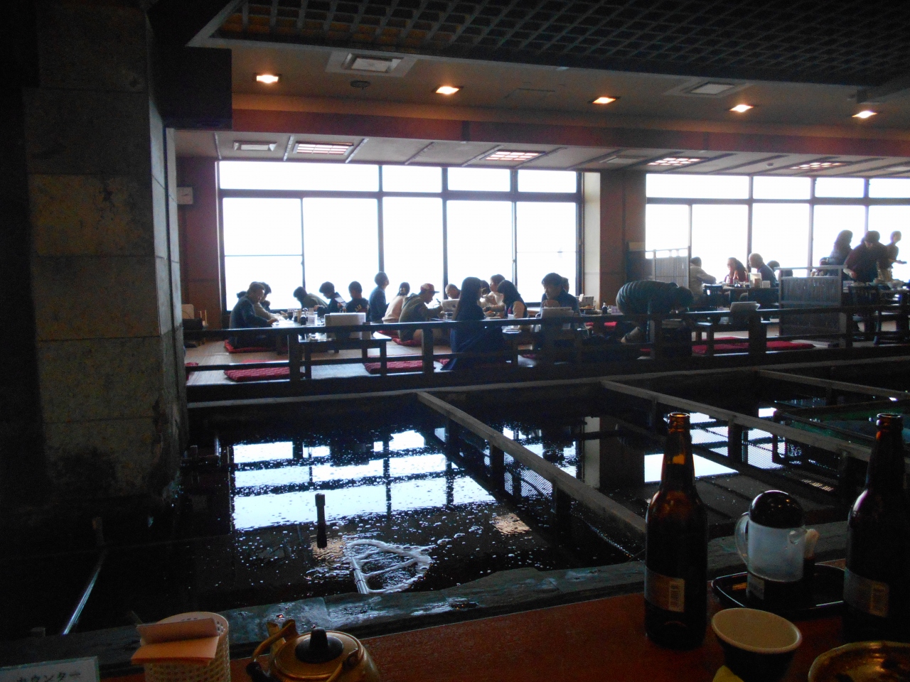 お風呂はサウナもありちょっとしょっぱいお湯でしたが気持ちよく露天風呂を楽しめました。浴場への入り口に冷たいお水のサービスもあり、何度も飲みに行きました。自販機も多かったです。- 旅行時期