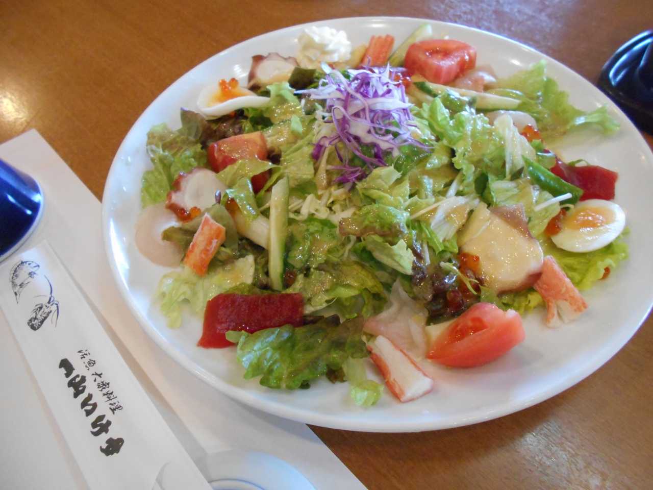約1年ぶりでしたが先に食券を買ってから渡された席番号のテーブルに着くようになっていました。その代り食べた後はそのまま帰れます。会計で並ぶよりはいいかもしれません。行ったのは日曜日で予約団体も多く40分ほど待たされましたが席に着いてからはどんどん料理が運ばれてきます。ここの目玉の伊勢海老天丼も少し姿を変えていて食べやすいようエビの身は3つに分けてありました。カニのコロッケもスパゲティサラダもついていて思っていたよりボリュームがありました。海鮮サラダも写真で見るより大きなお皿でびっくりしました。子供さんも多く真ん中のいけすを見学している人が多かったです。