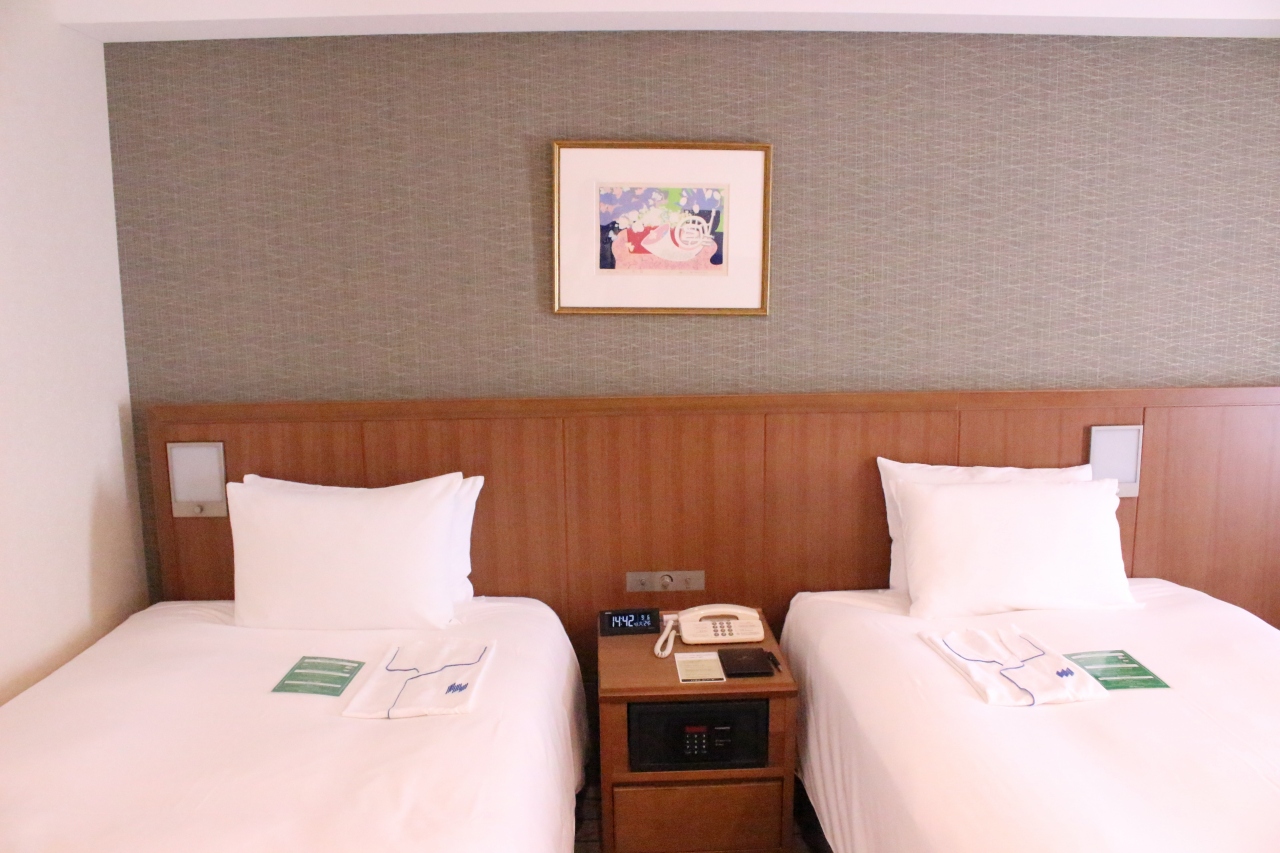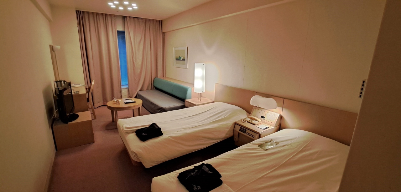 部屋は広めでくっつけたベッドの間に小さなテーブルがあって初めてのレイアウトでした。