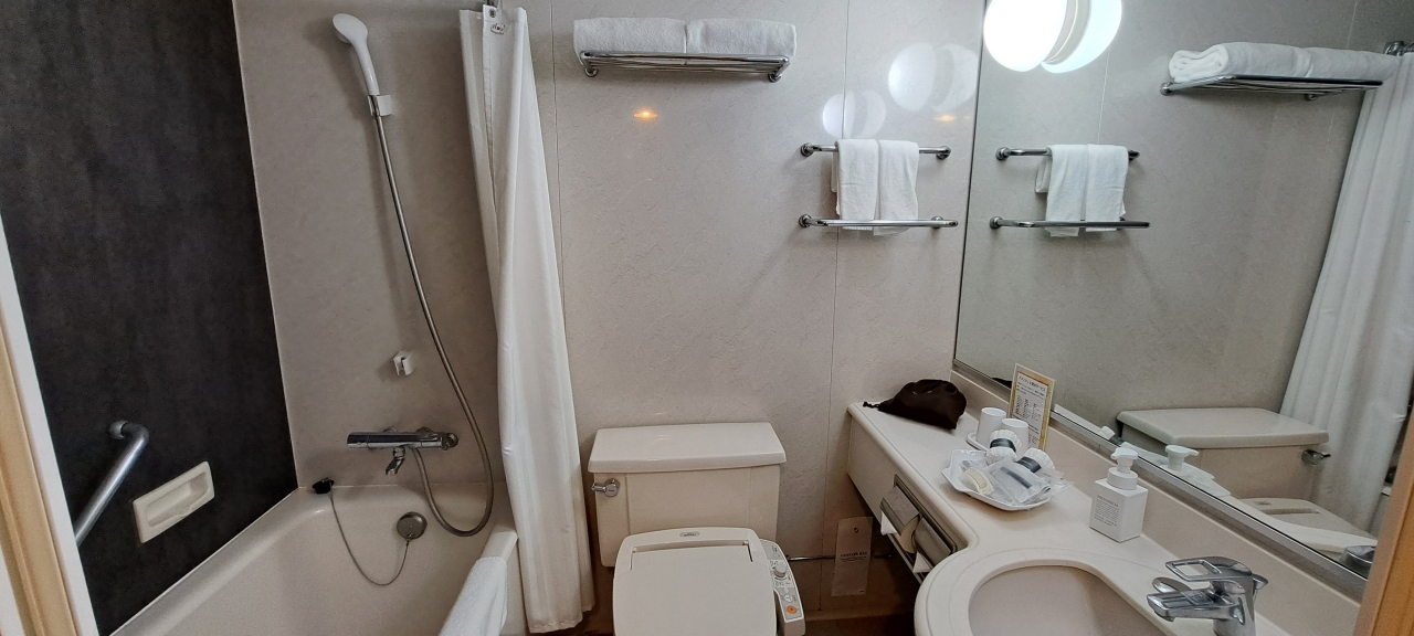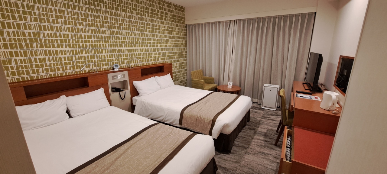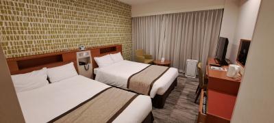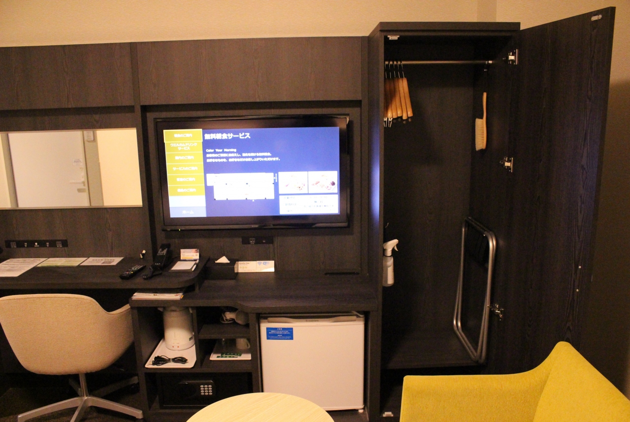 空港に近いせいか大きなスーツケースを置く場所があったり部屋は広めでした。コインランドリーも広く自販機や氷のサービスもありました。1階にマツキヨやコンビニがあり便利でした。個人的には浴衣は使いにくいのでセパレートのパジャマがよかったです。空港に近いですが、飛行機はあまり見えませんでしたし一通の道が多いので近いわりに空港シャトルバスは時間がかかりました。