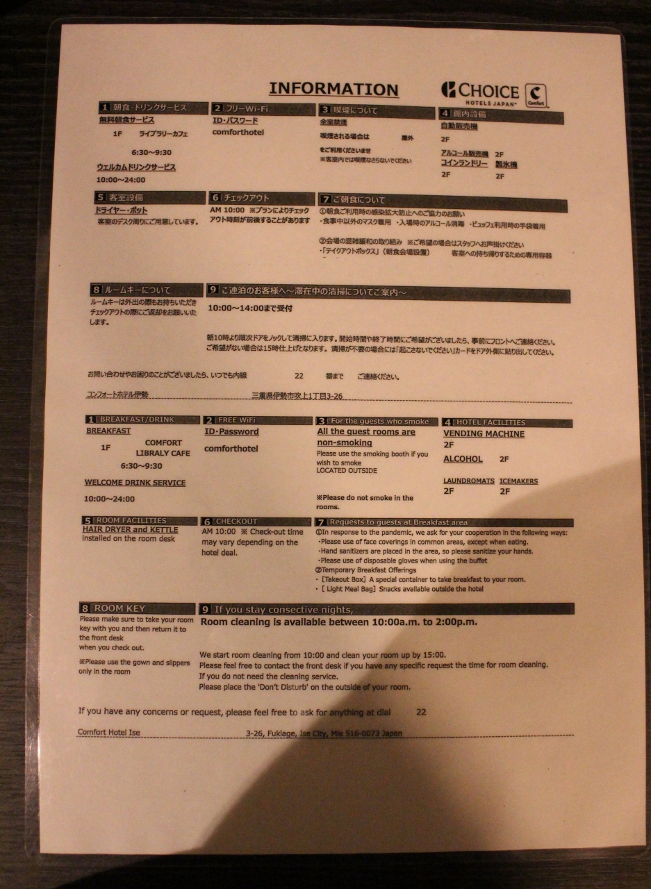 駅から徒歩1分。荷物を預けて直ぐに観光が出来ます。他のコンフォートに泊まったことがあるので大体同じでしたが比較的新しく安かったです。部屋も広くて荷物を広げても充分でした。寒い時期でしたので大浴場があればもっとよかったですが、観光地なのでこの値段ならコスパもよいと思います。