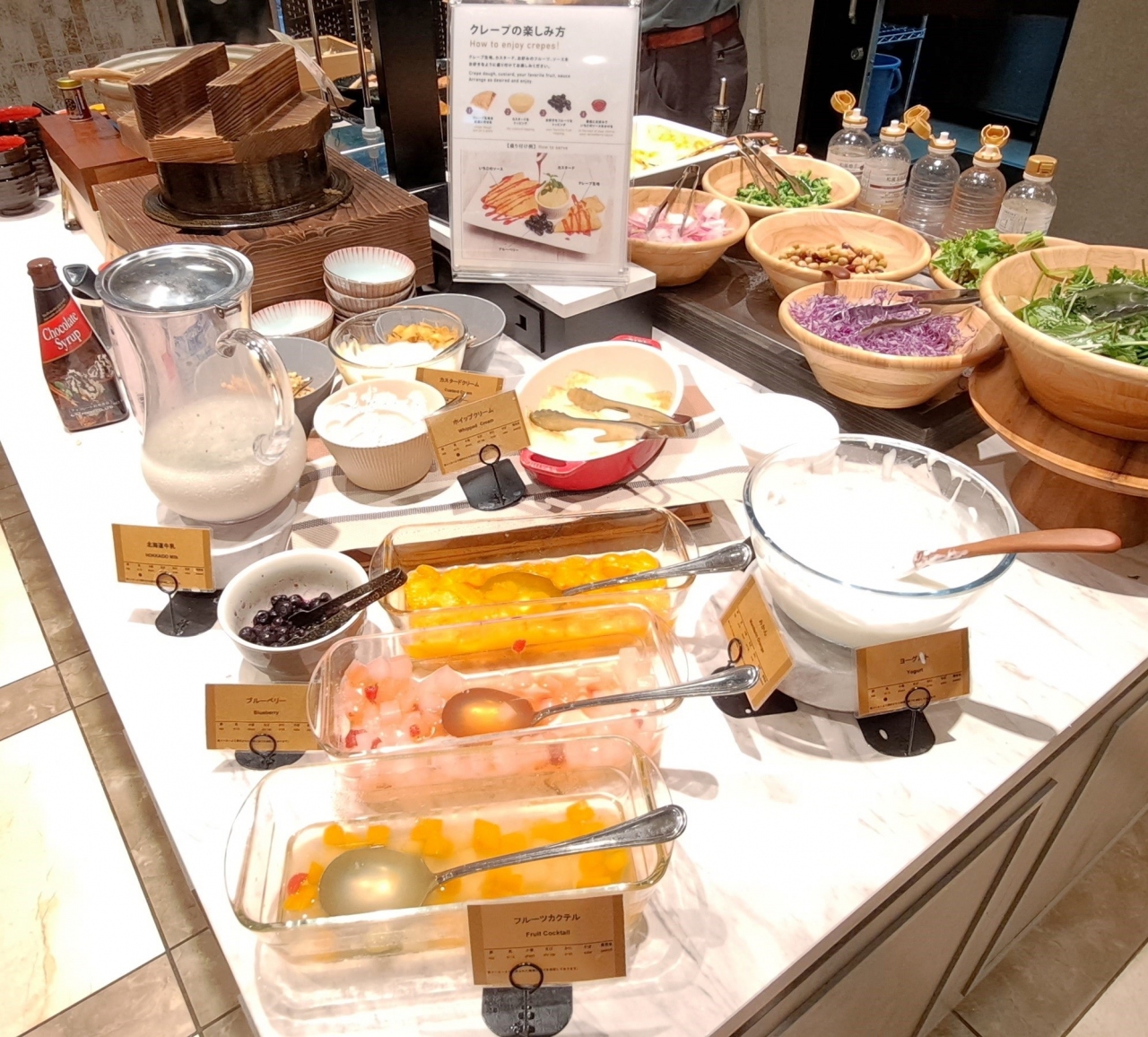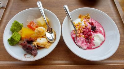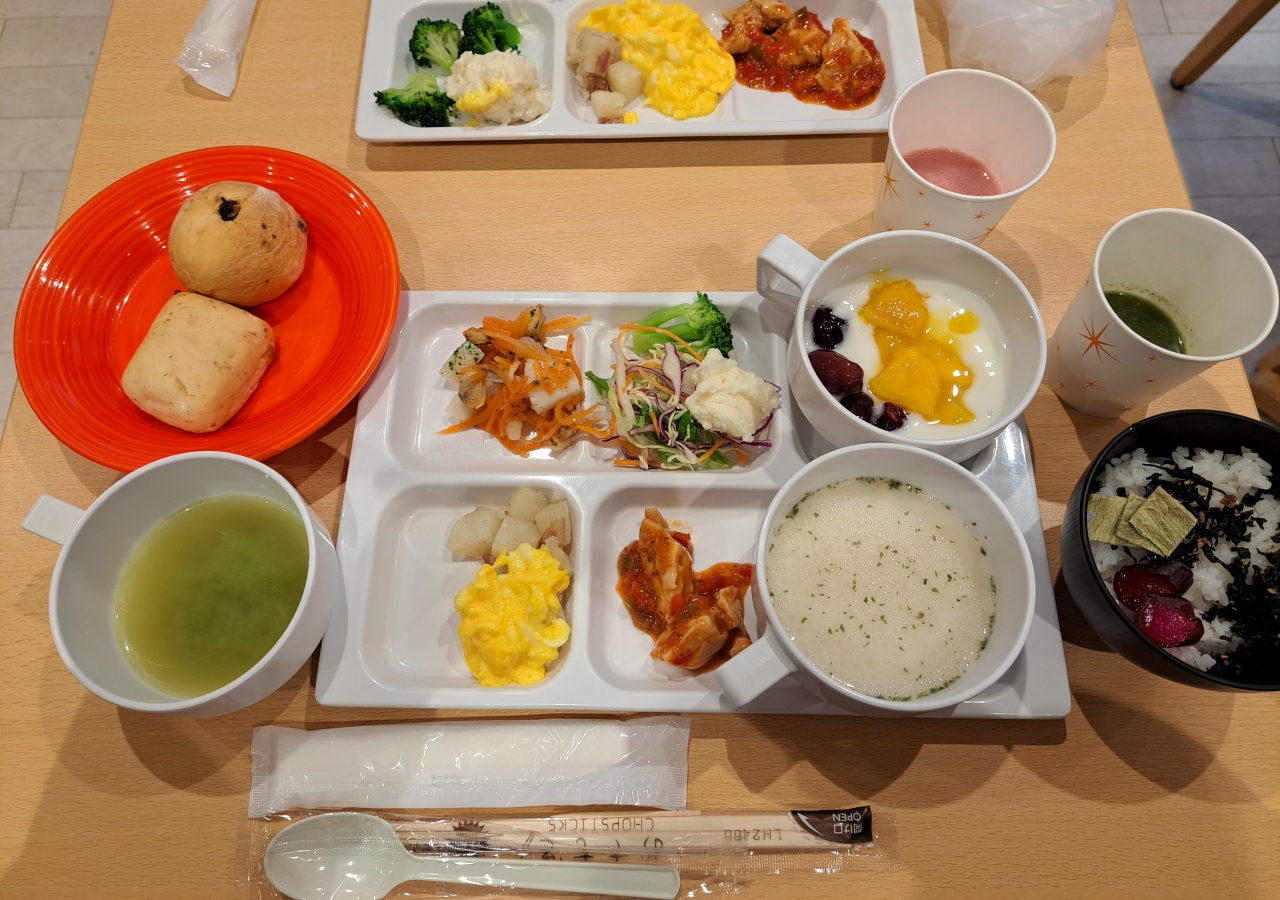 朝食は枝豆あんかけの卵豆腐、明日葉とろろ磯辺揚げのせ海藻うどん、八重洲ちゃんこ鍋、魚介ホワイトカレー、クレープなど変わったメニューがあり楽しめました。- 旅行時期