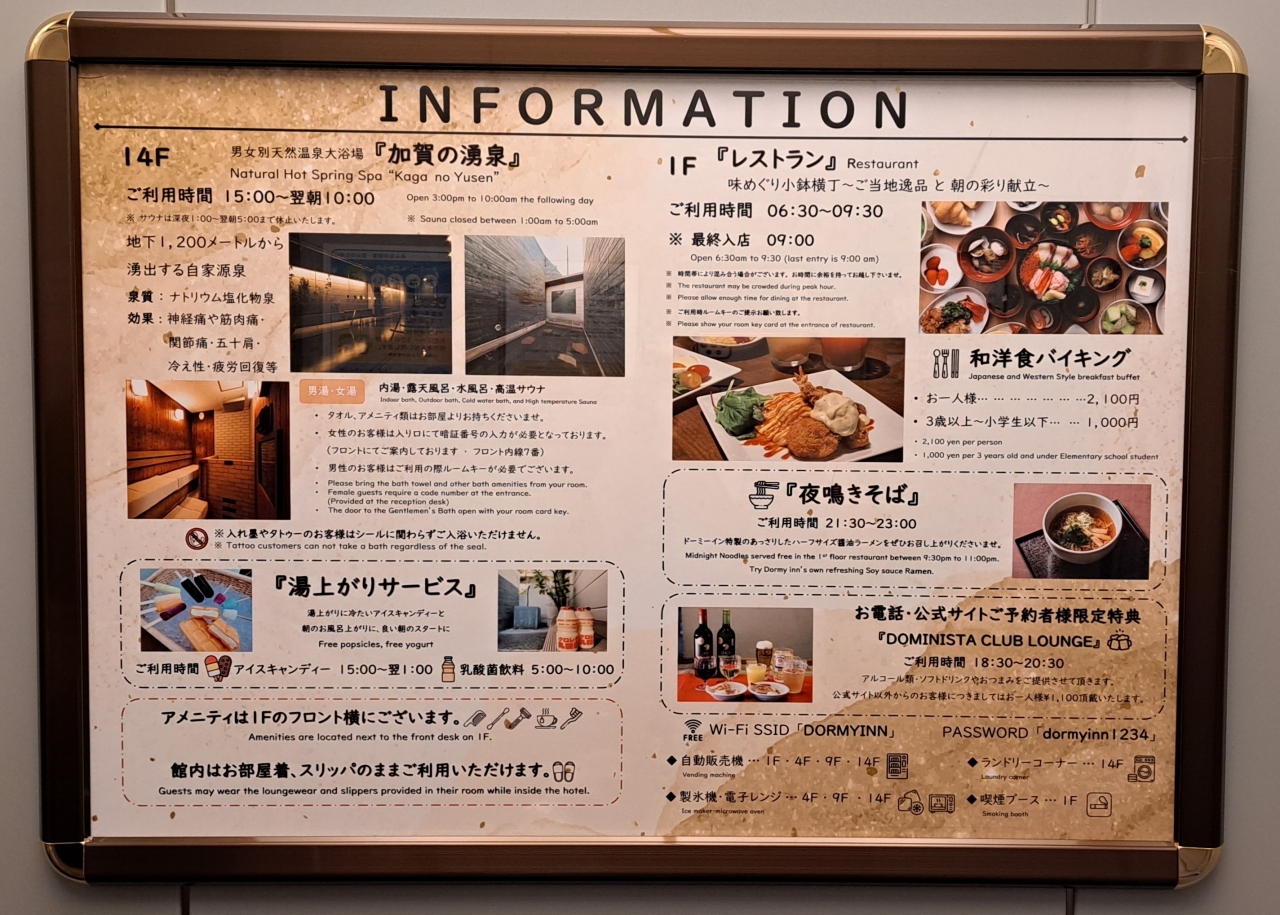 ポイントやクーポンでかなり安く泊まれました。ドーミインといったらウエルカムドリンク、温泉、湯上がり処のアイスキャンディー、マンガ、夜の夜鳴きそば、お部屋の冷蔵庫にデザート、朝食は種類が多い、地元のものが食べられる などなど楽しみがいっぱい。