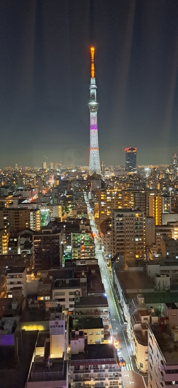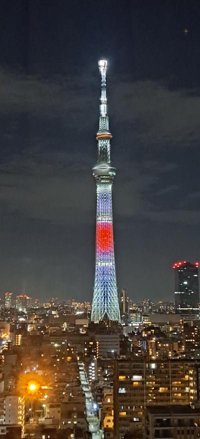お部屋はそんなに広くないですがスカイツリーを見るには絶好の場所でした。年末だからかしょっちゅう色のパターンが変わり、年始の特別な色も見ることが出来ました。