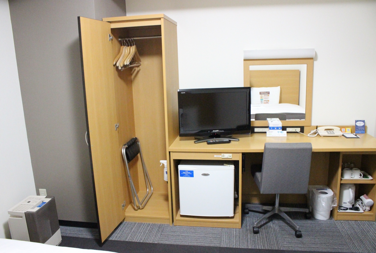 千葉駅からは少し歩きますが京成千葉中央駅からはすぐ目の前です。フロントは2階でコーセーのホワイトマスクがいただけました。ドリップコーヒーやー紅茶はここで取り部屋には梅昆布茶と緑茶がありました。空気清浄機も加湿機能もあり一通り欲しいものはありました。お風呂とトイレも別で特にお風呂は広かったです。気になったのは大通りに面していて夜中でも歩行者用の信号の音がよく聞こえたことです。