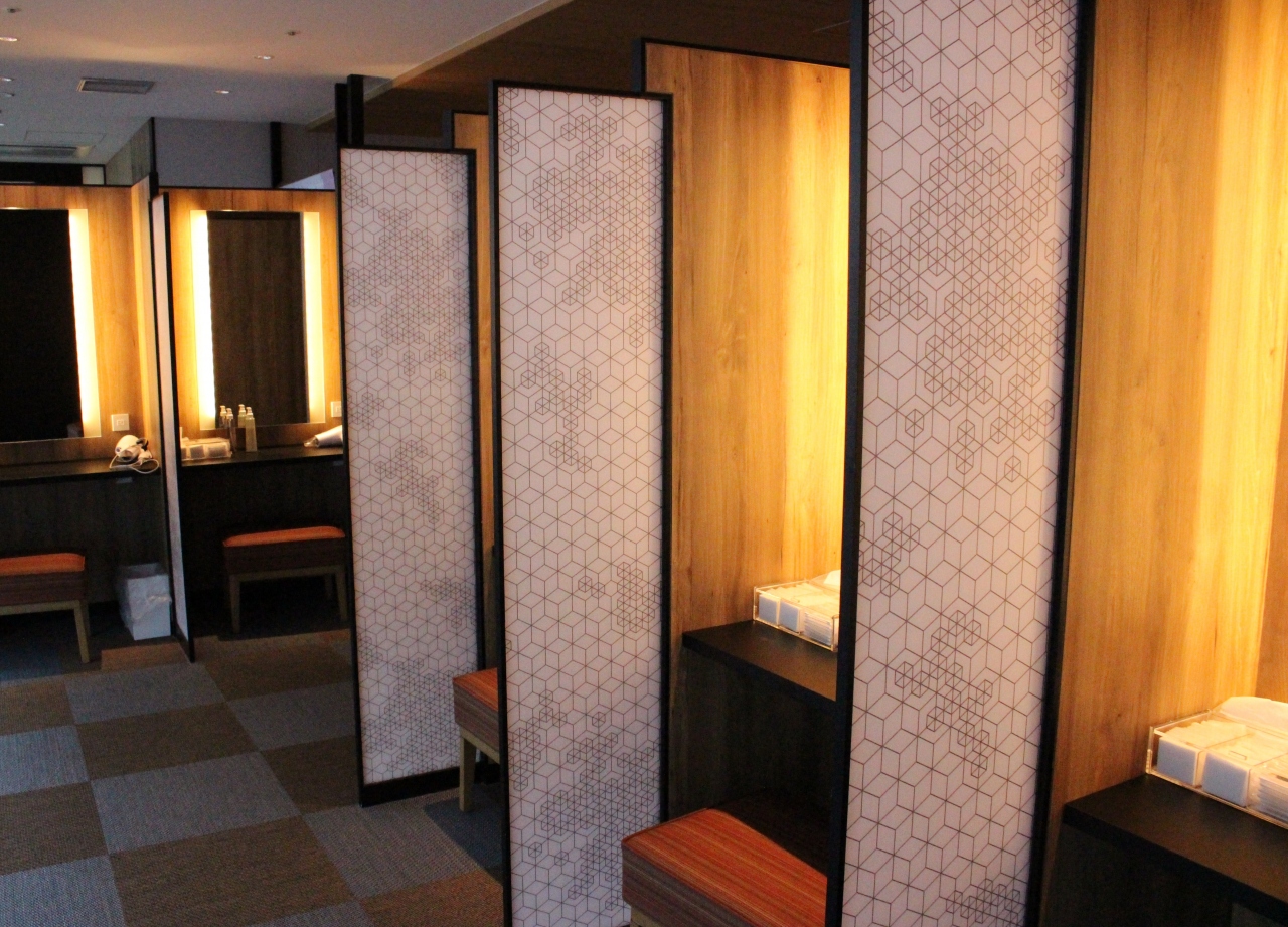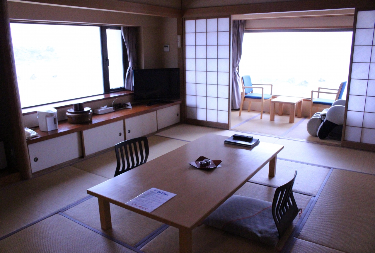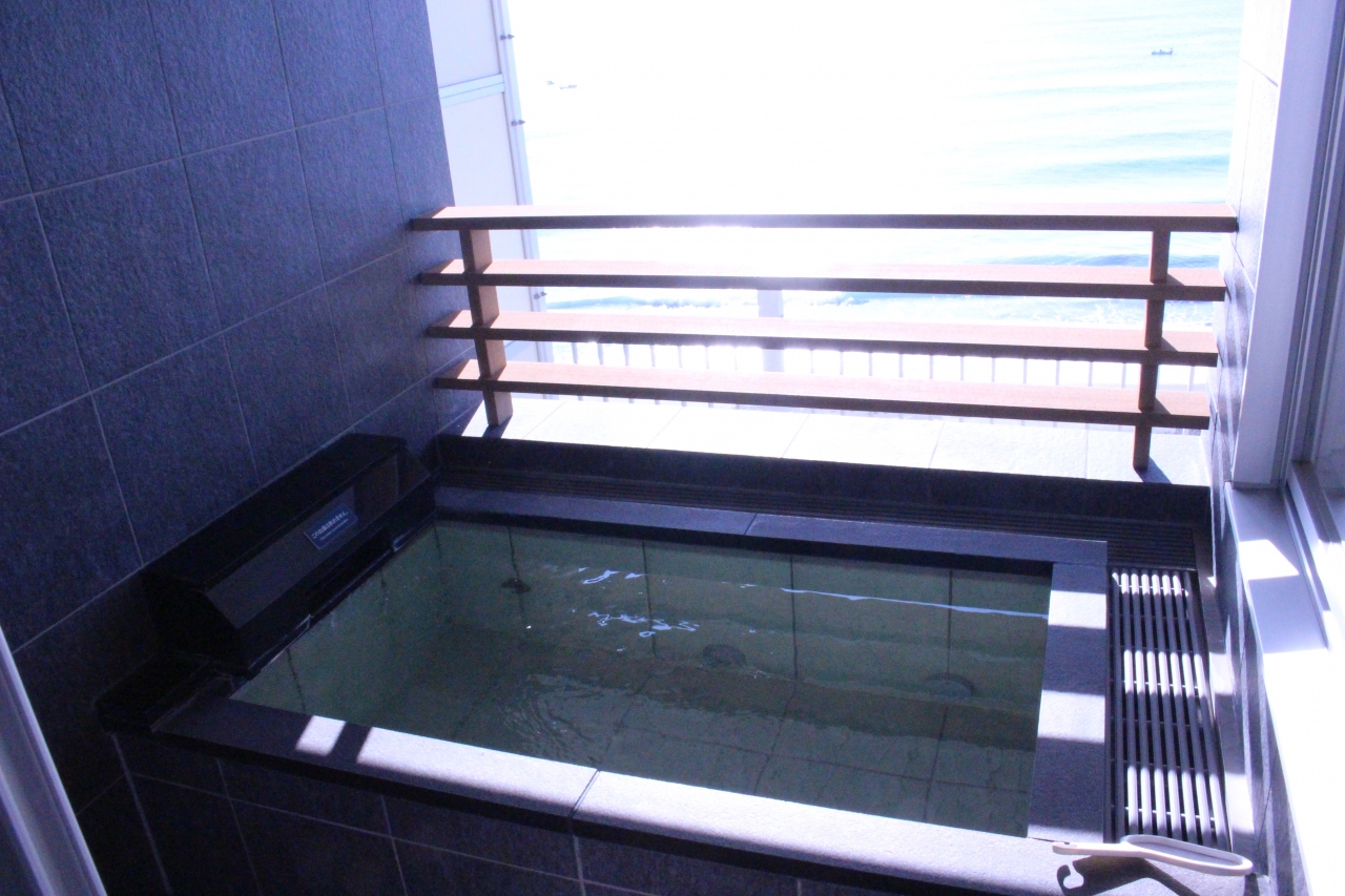 大浴場が密になってると怖いので露天風呂付きのお部屋にしました。畳に椅子付きテーブルとベッドがあり初めてのタイプでした。海が見えるのも気持ちがよかったです。雪肌精の化粧水乳液がありテンションが上がりました。化粧水QRコードを読み込むとお風呂の混雑状況がわかるのでよいと思いましたが、行ってみると団体のお客様なのか20人以上で脱衣所で大声でしゃべったり笑ったりで早く出たくなりました。加賀温泉に行った人の話では脱衣所では皆マスクをしていたと聞いたのでここでも同じかと思ったらやはり表示されていなければだめなんだなと残念でした。あんなに密なのに“空いている”と表示されるのはどうしてなのかとも思いました。