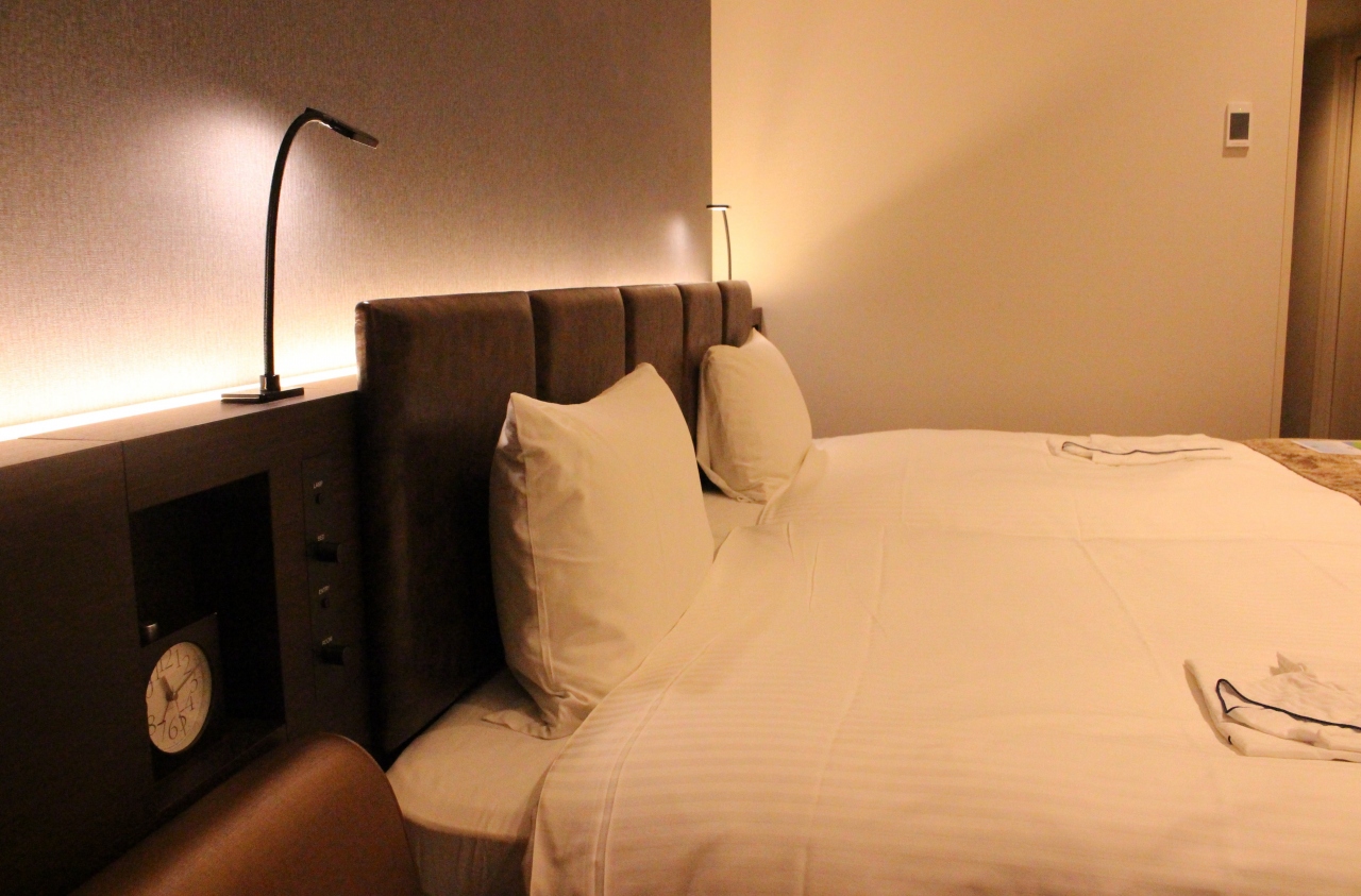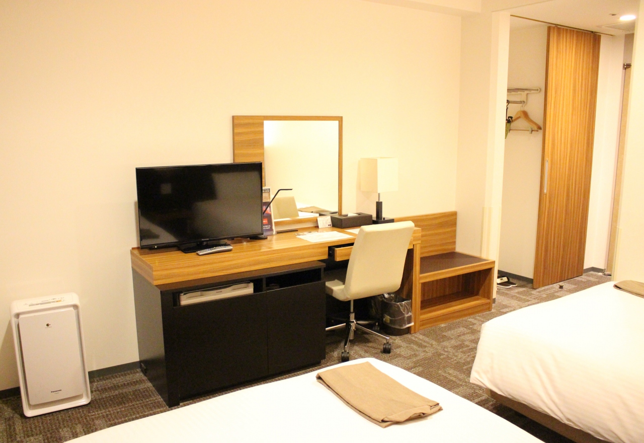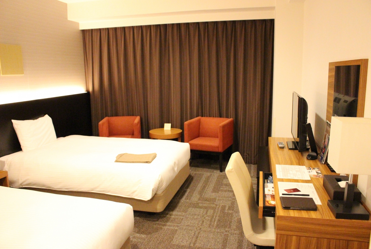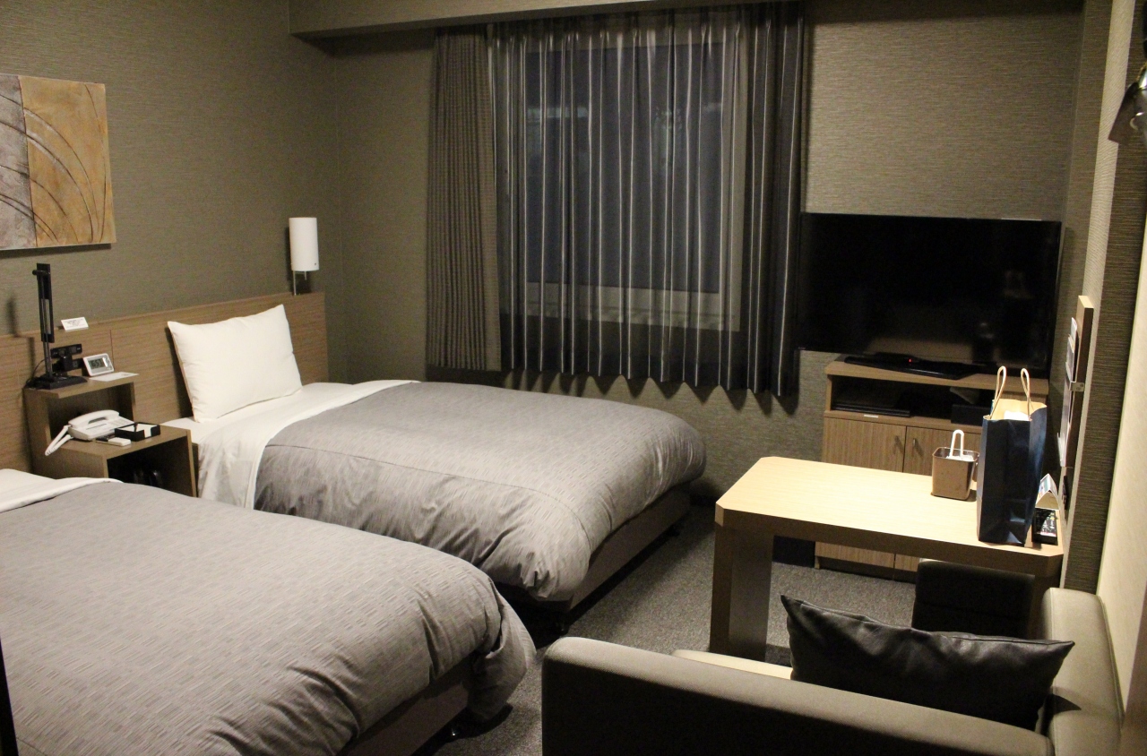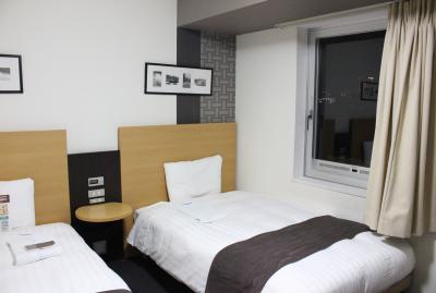 錦糸町駅北口をでれば右手に見えるので迷うことはありません。フロントは4階で、自由に持ち帰れるマスクを置いてありました。今の時期、このマスクの確保も難しいと思うので感激しました。部屋はベッドがくっつけておいてあるコンパクトツインだったのでそんなに広くありませんがサイドテーブルがキャスター付きで動かせ、ミネラルウオーターのサービスもありました。普通のお部屋でしたがクッションはコアラのマーチ型でした。部屋のドアが重かったのとお風呂の水圧が低いのが難点でした。空気清浄器を加湿に設定しても40パーセントを超えずかなり乾燥した部屋でした。