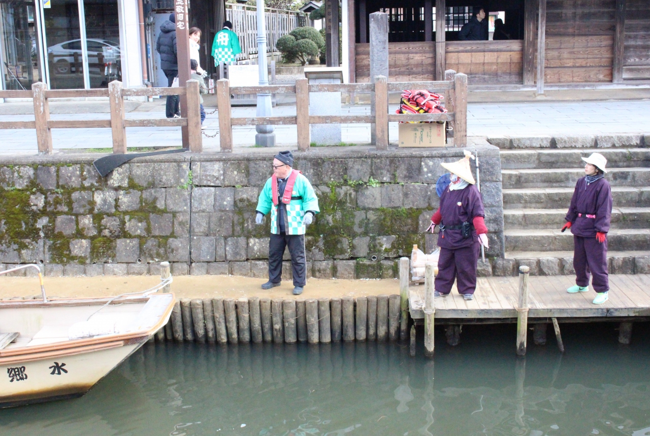 夏の川べりのイメージが強かったのですが、冬でも問題ないですね。船には乗りませんでしたがお客さんはこたつに入りながら景色を眺めていました。小野川から少し離れても昔の商家が残っていて小さな道に出くわしたりちょっとワクワクしました。佐原の駅前から歩いて10分ほどですが土日だと巡回バスが走っていて1000円の一日券を買うと香取神宮にも行けます。
