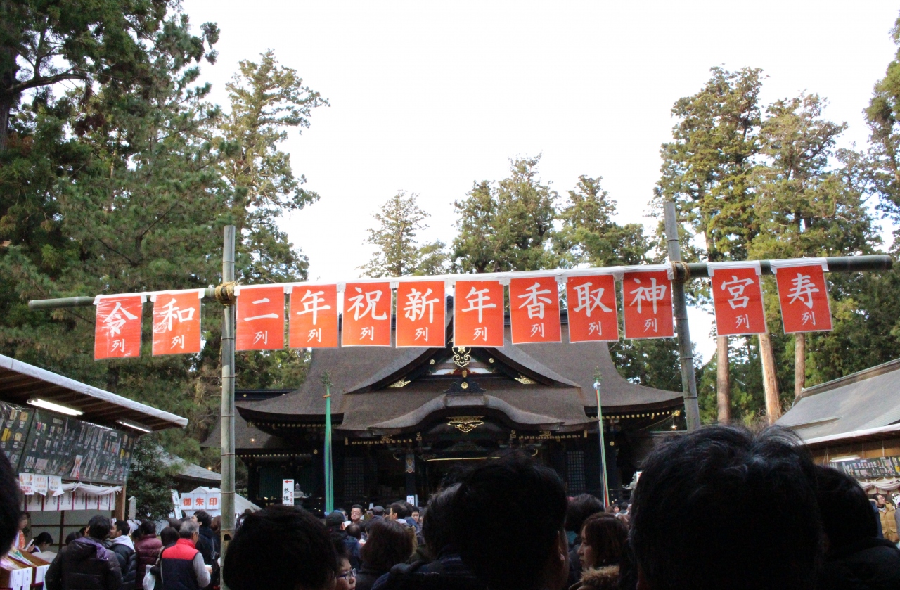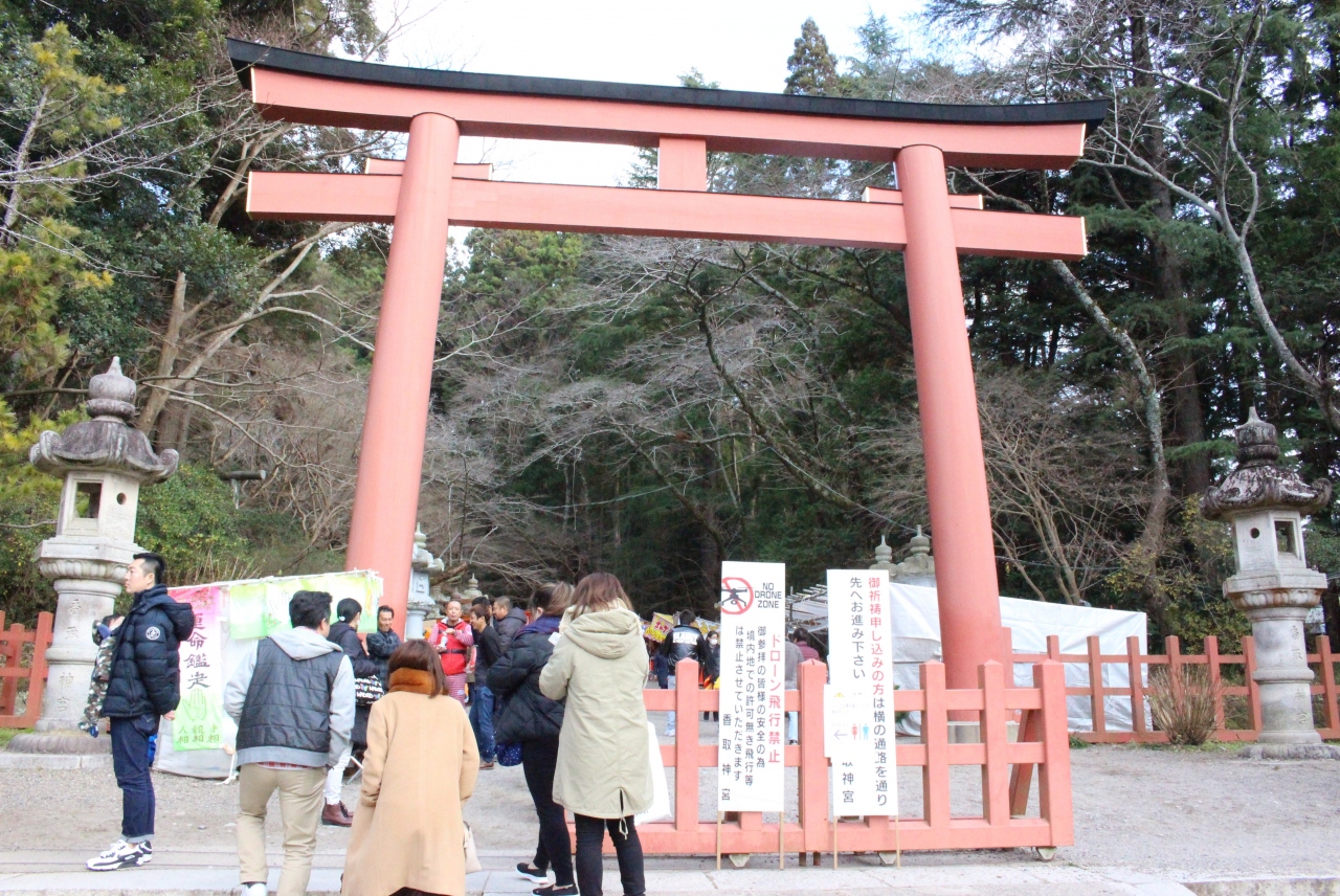 大鳥居までの参道商店街はとてもにぎわっていて、有名なお店には長蛇の列ができます。大鳥居をくぐってからも屋台が続き、総門から楼門までもすぐには行けませんでした。一人で参拝に訪れた方は列を抜けて手水舎に行くことはできません。要石は上からのぞかないとよく見えませんが子供なら隙間から顔を突っ込んで見ることができます。- 旅行時期