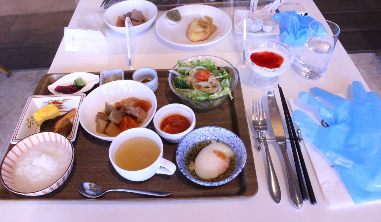夕食は品数も多くて満足でした。小鉢に盛り付けられているものが多く工夫を感じられましたが、お皿を下げてくれる時に「まだ使うかもしれませんね。」とティースプーンを素手でつかんでおいてくれたのはちょっとびっくりしました。手袋を使いマスクもし、お客を座らせるテーブルの位置も考えられていたのにうっかりだったのでしょうか。