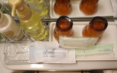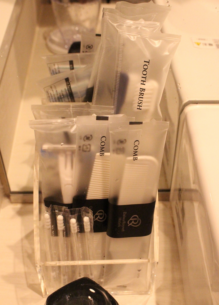 東急ステイで唯一“プレミア”が付くホテルのプレミアツインに泊まりました。フロントは13階で客室はさらに上層階です。歯ブラシ以外はフロント階で好きなアメニティを持っていくタイプでしたがそのラインナップがすごい!コスメは2メーカー用意されていて好きな方を選べるし、バスソルトや入浴剤、プラセンタマスクに日焼け止めジェルもありました。さらにフロント階には無料のドリンクコーナーがあって“太っ腹”感が半端なかったです。洗濯をする予定があるというと洗剤も無料でいただけます。(荷物が少なくて済みます。)