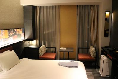 千葉駅からもほぼ濡れずに行けます。ロビーや1階のカフェは吹き抜けで天井が高く雰囲気がよいです。手の甲で検温して消毒液は足元で操作して出てきます。いろいろ考えられていましたがお部屋はちょっと残念でした。
