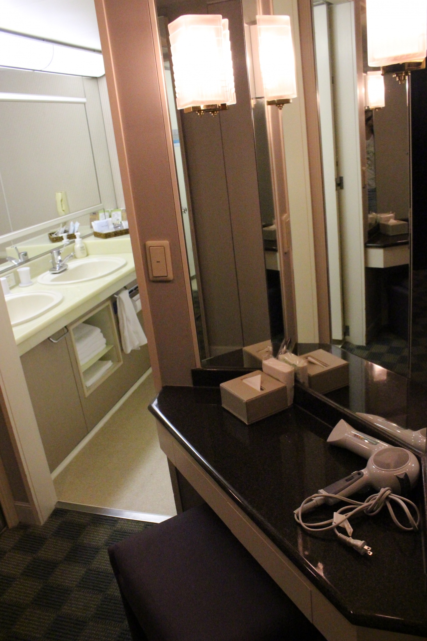 アメニティはスポンジ、綿棒もあってよかったですが、お湯をエレベーターホール横の自販機コーナーまでポットをもって取りに行くので部屋から遠い人はちょっと面倒臭いかも。ツインもダブルもBタイプはエコノミーで部屋はやや狭いです。スーツケースが大きい人はAタイプでないと大変でしょう。バスルームは洗面台に水が溜まってしまうのでそこを改善してもらえたらと思います。