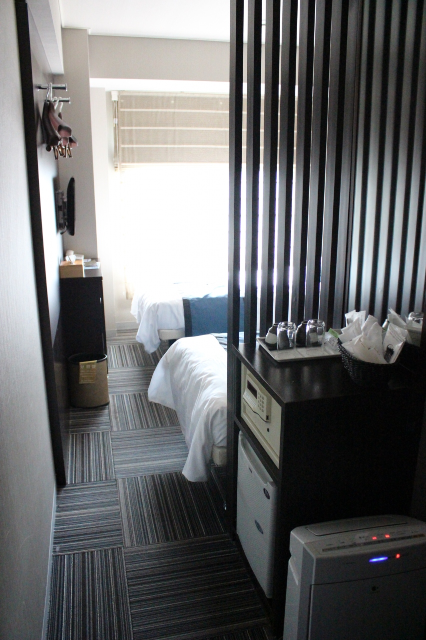 部屋はそんなに広くないので海外旅行の前後だとスーツケースの置く場所がベッドの上になるかもしれません。必要最小限揃っていますし、氷や自販機も各階にあります。 エレベーターフロアや部屋の中にも木のぬくもりを感じることができました。