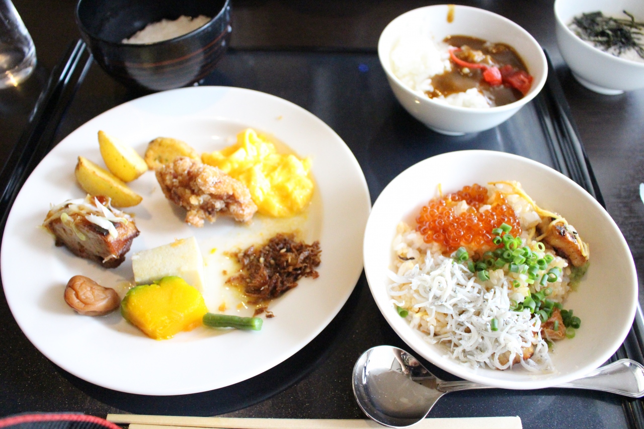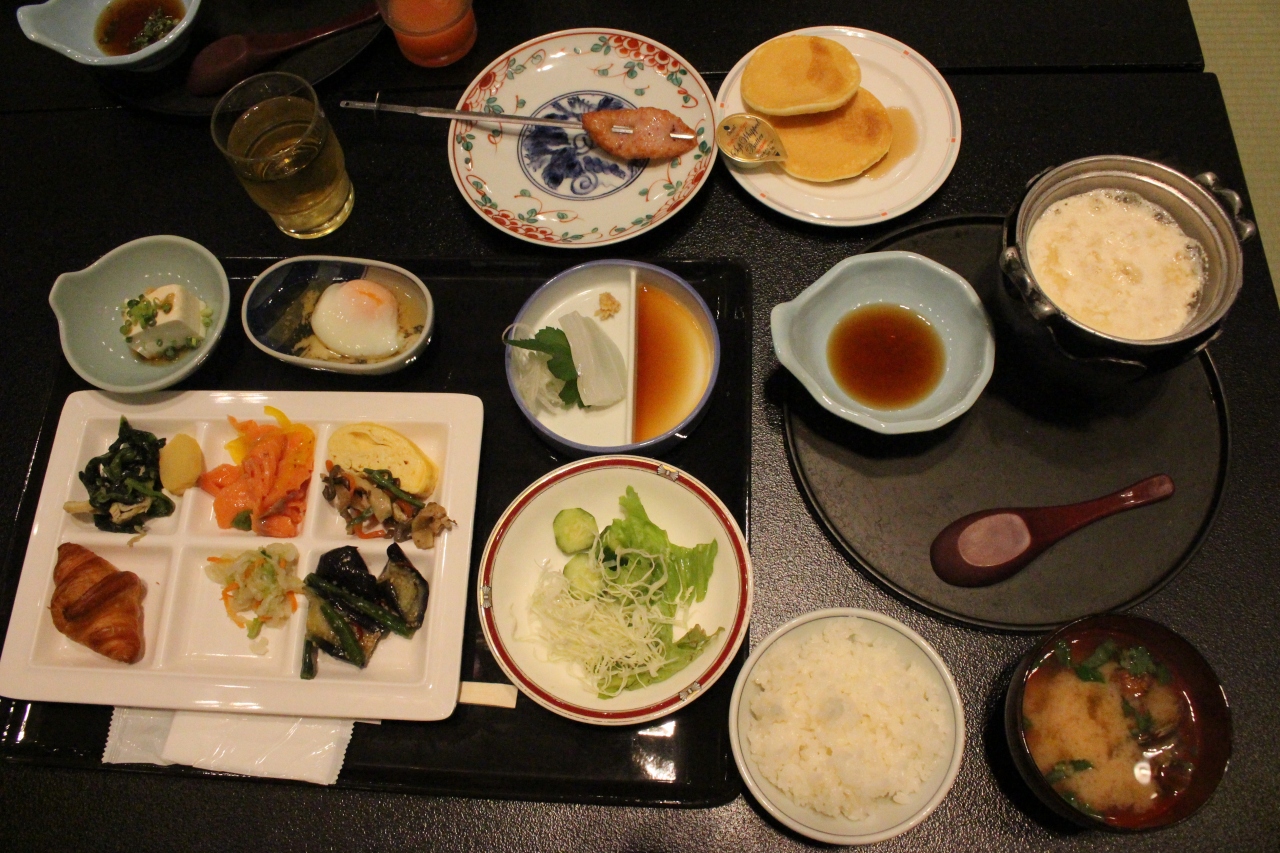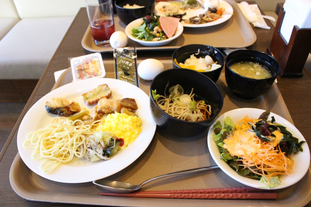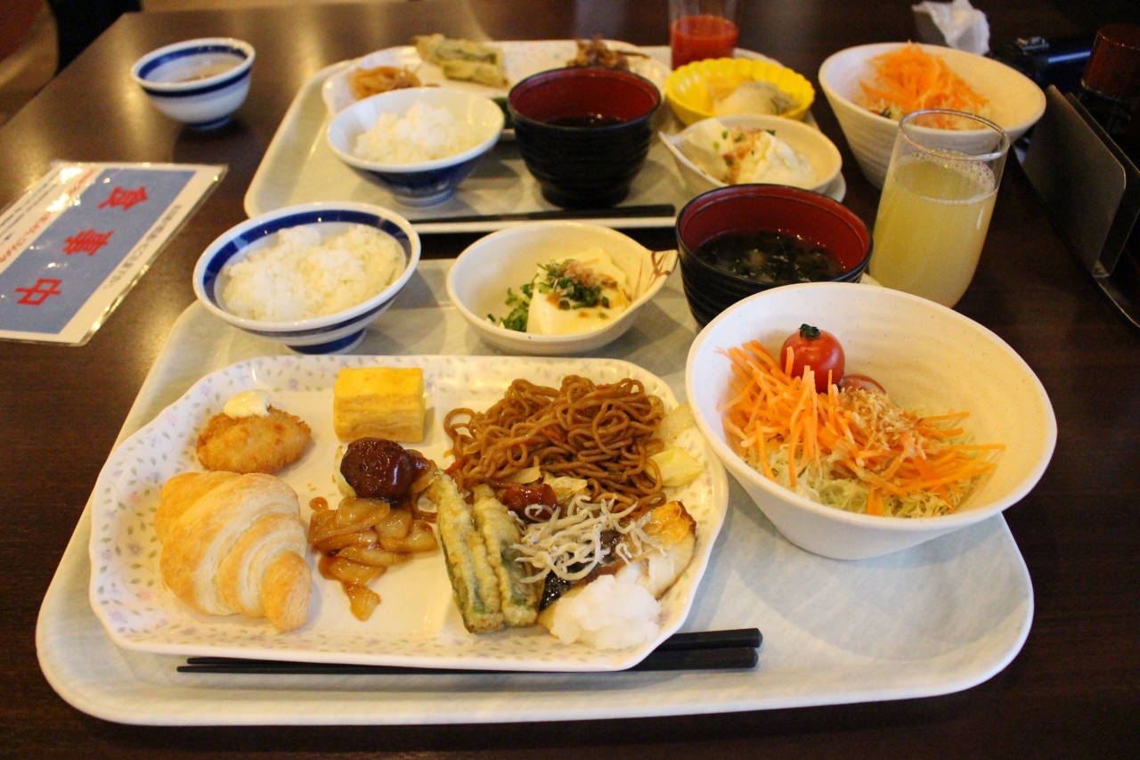 朝食はお盆で海外からのお客様もたくさんいましたが、早めに行けば待たされることもなく良い場所に座れました。麺類はなかったもののカレー、白米、お粥があり、ふりかけだけで6種類もありました。フレンチトーストもおいしかったです。- 旅行時期
