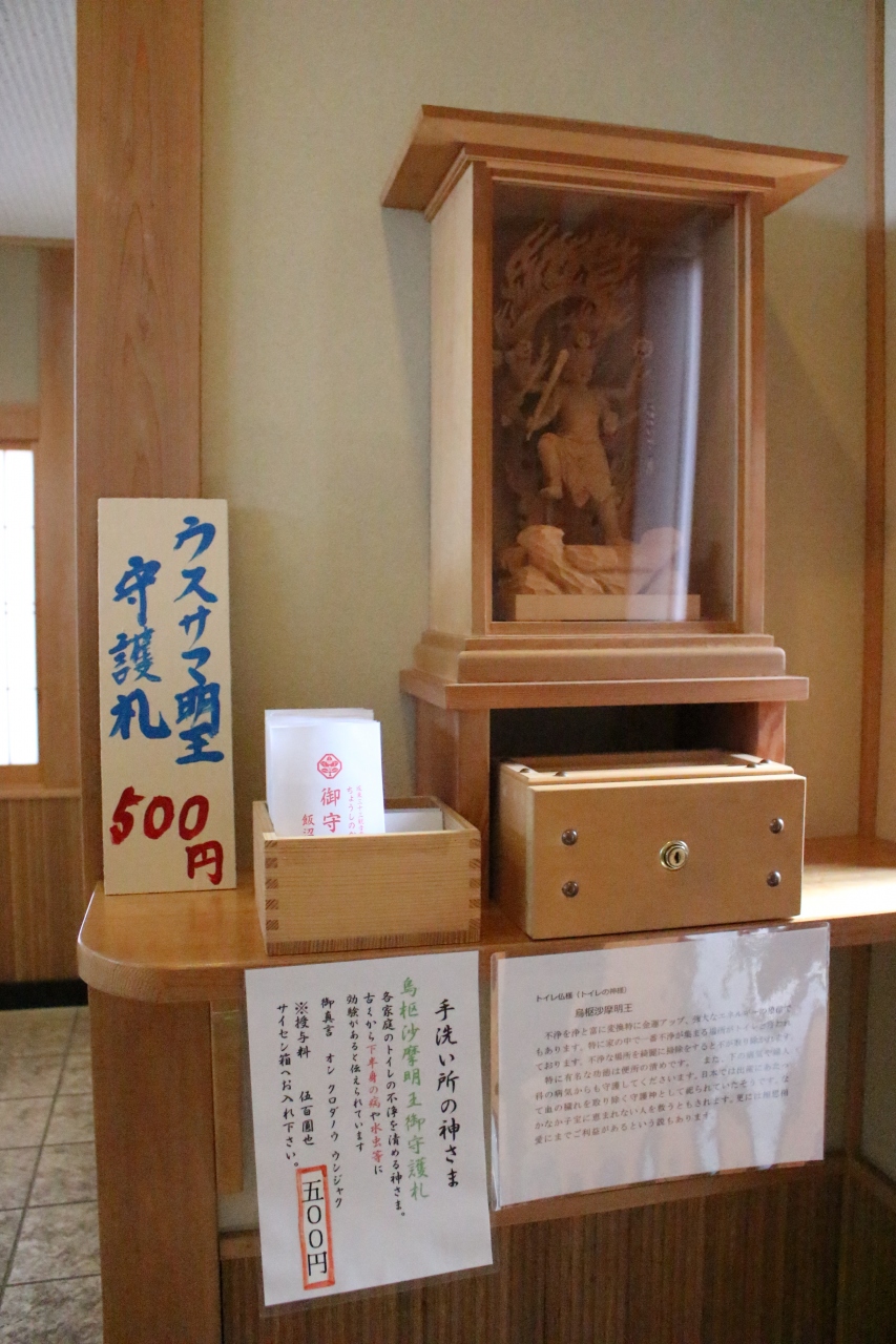 トイレの前に“トイレの神様 烏枢沙摩大明神”と書いてあり、面白いな~と思って入るとお札が置いてありました。トイレをきれいにするといいことがあると 聞いたことがありましたが、まさか本当にこんな大明神が祀られているなんてびっくりでした。- 旅行時期