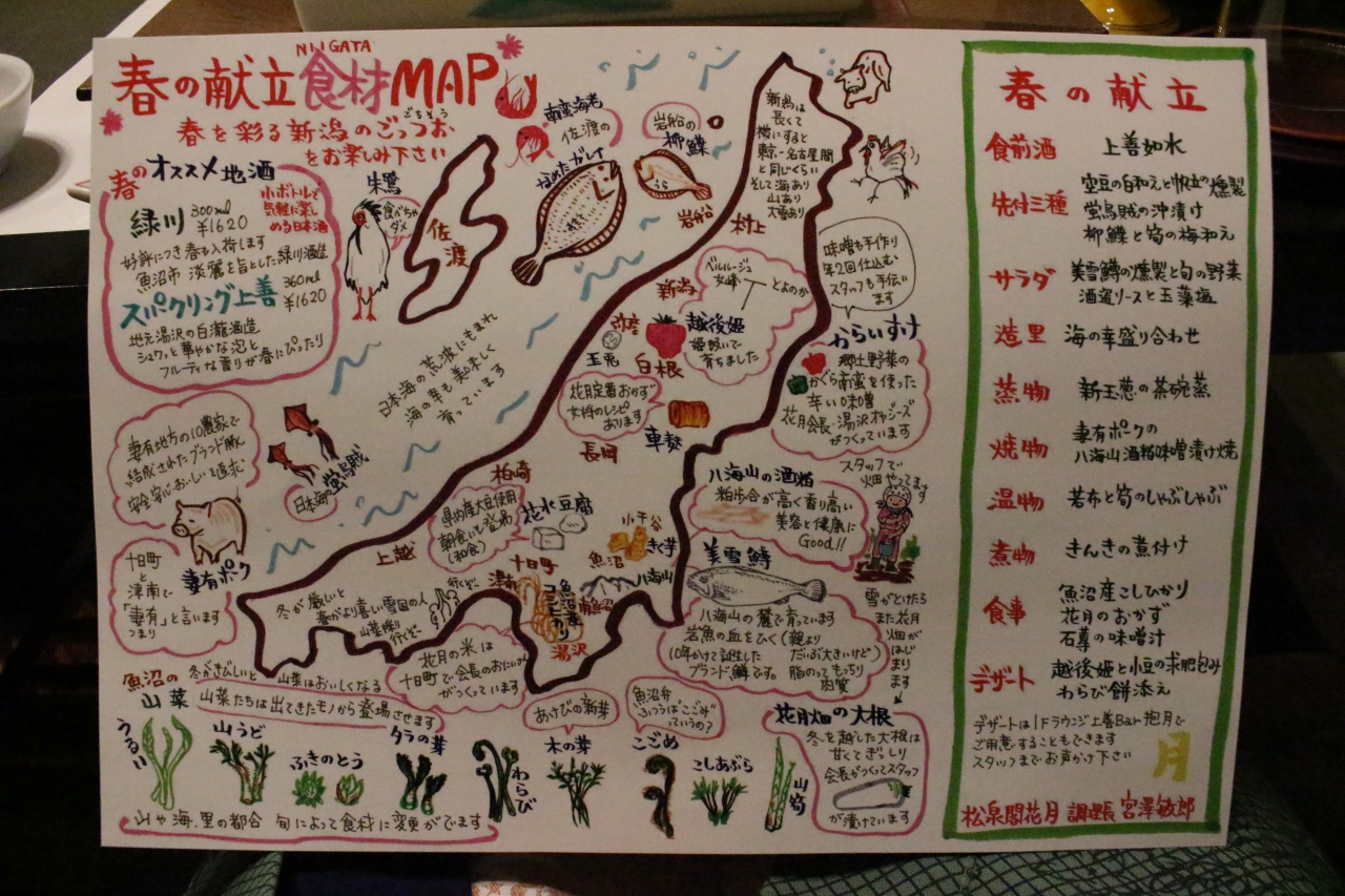 夕食は地元の食材にこだわったものが多く、手書きの食材の産地を記した地図が置いてあり、「この野菜はこれだね」とか言い合いながら次のお皿を待つ間の楽しみになりました。昔を残しつつ斬新なメニューもあっておいしかったです。
