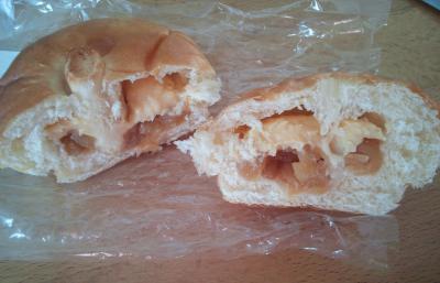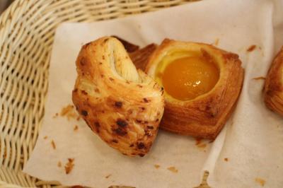 店内は明るくてきれいでした。ディスプレーの仕方も普通のパン屋さんと違い通路が広くとってありました。午後にお邪魔したので売り切れているパンもありましたがバジル・ベーコン・チーズパン と デニッシュオランジェ と リンゴパン と クロワッサンを1つ買いました。ショーケースの中にアップルパイを見つけ食べてみたいなぁと思いワンホールは無理なのでピースで買いました。お会計の時に「フォークをお付けしますか?」と聞かれ「お願いします」と答えるとちゃんと人数を見て2本入れてくれました。