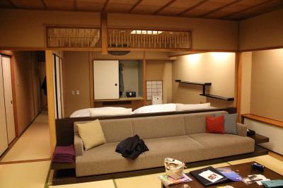 部屋に入るとベッドがなく、“これはもしや?”と思ったら奥にドアがもうひとつありました。冷蔵庫の飲み物も無料。コーヒーマシン、ミネラルウオーター4本、トイレ2つ、寝室にはマッサージチェアまで!! バスルームは冗談でなく3人くらい寝ることができそうで寝室にドレッサーがあるのにバスルームにはお姫様が使うような鏡がありました。