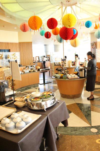 朝食は1階の「ガーデン ダイニング」でのブュッフェでした。ホテル内は静かでしたがこんなに宿泊してる人がいるんだ と思うほどで少し待たされました。空調の風が当たるね と言っていたらすぐにほかの席を探してくれました。ごはん、お粥の他にフォーもありました。パクチーを好きなだけ入れて食べました。少し気になったのはサラダのコーナーのレタスが空調のせいか少し元気がなかったこと、あとはチーズ好きにはもっとチーズがあったらな と思いました。- 旅行時期