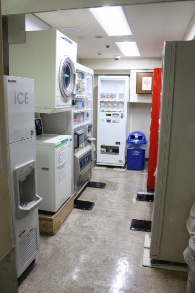 フロント横には新聞の販売機、電子レンジがあり割りばしやプラスチックのスプーンやフォークもおいてありました。ランドリーコーナーは4階にありちょうど目と鼻の先だったので便利でした。長い旅では洗濯機ありがたいです。