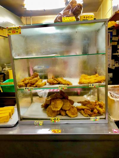 • さかな、野菜、イカ、いんげん、さつまいも、もずく天...と、これ全部一...