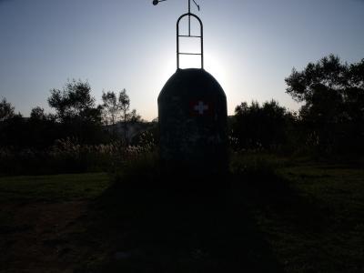 「ダポスの丘」に建つケルンダポスの丘とはスイスにあるダポス村の風景に似...