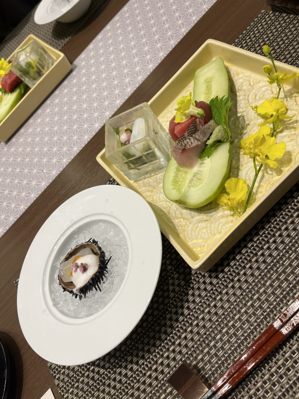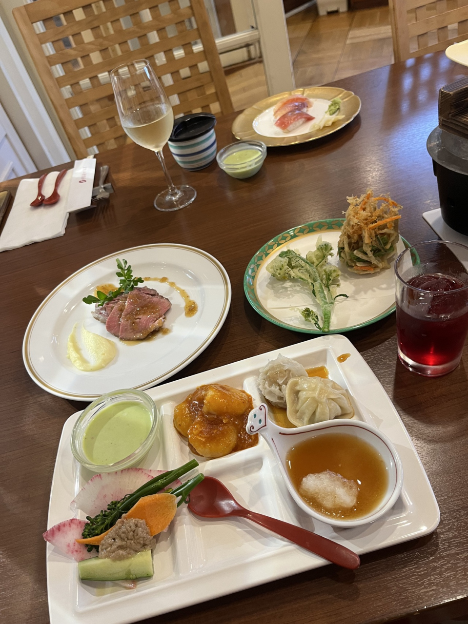 夕食は、一品ずつサービスされ、どの料理も美味しかったです。朝食は、感動のブッフェ❗️品数多くて、本当に感動しました。