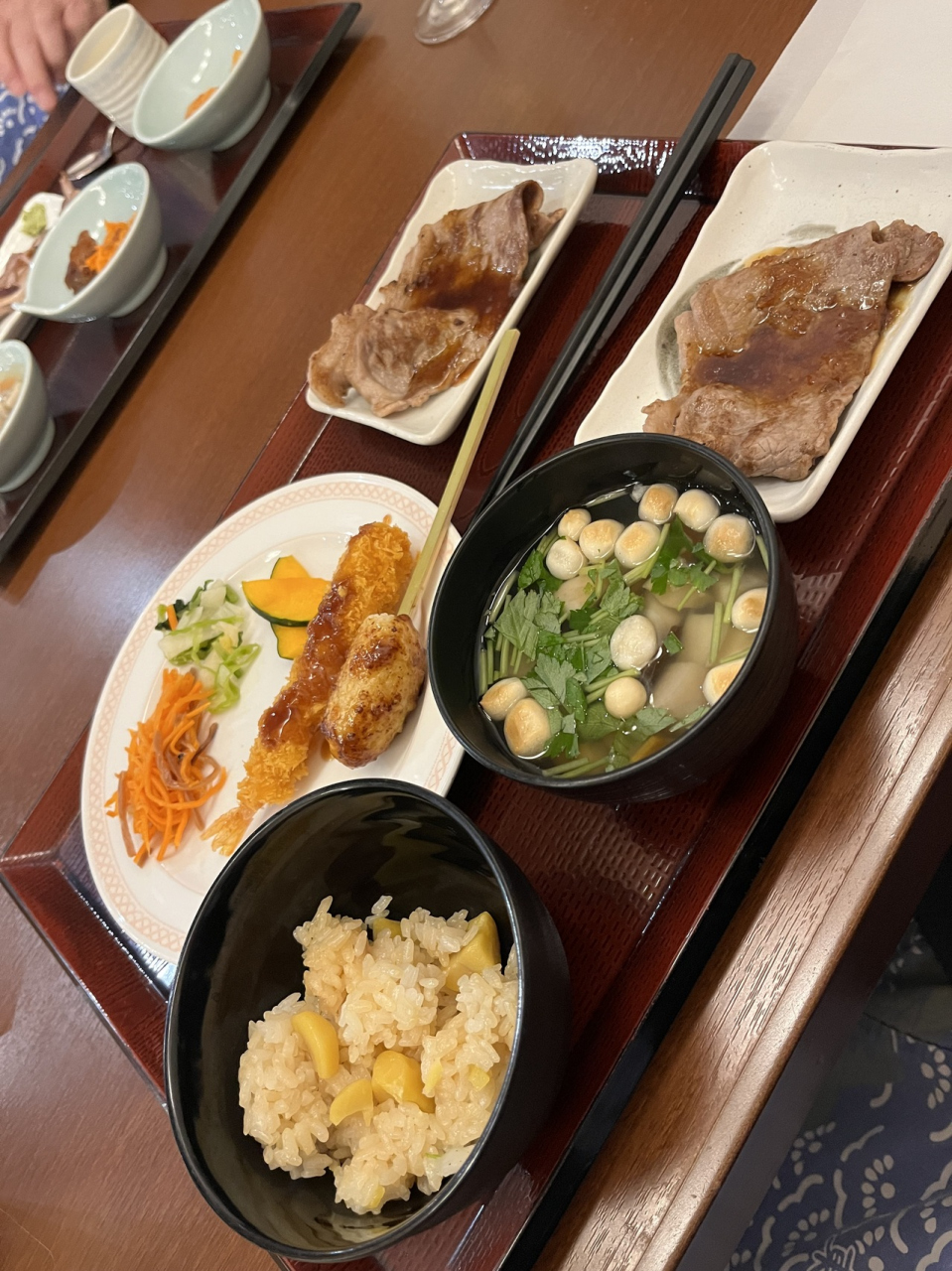夕食は、料理がスタッフからサービスをされました。タイミングよく配膳してくれたり、笑顔で話しかけてくれたりなど、楽しく食事できました^_^