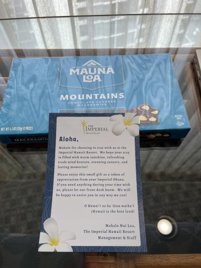 ホテルからチョコレートのプレゼントもありました。- 旅行時期