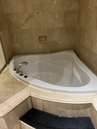 娘家族は、8階のコアスイートに宿泊しました。バスルームは、ふたつ。ハーフサイズのバスタブと、シャワーブースがありました。