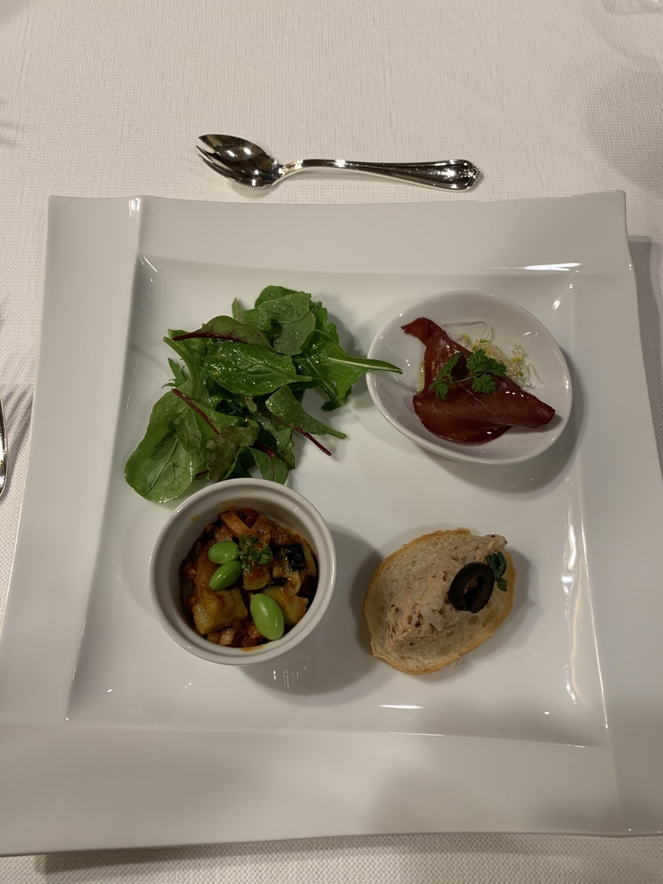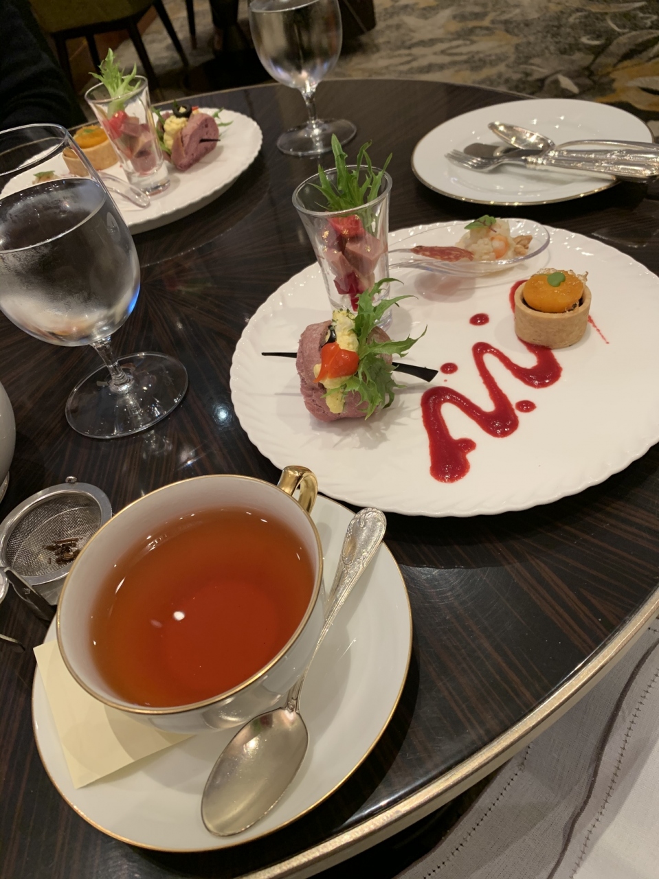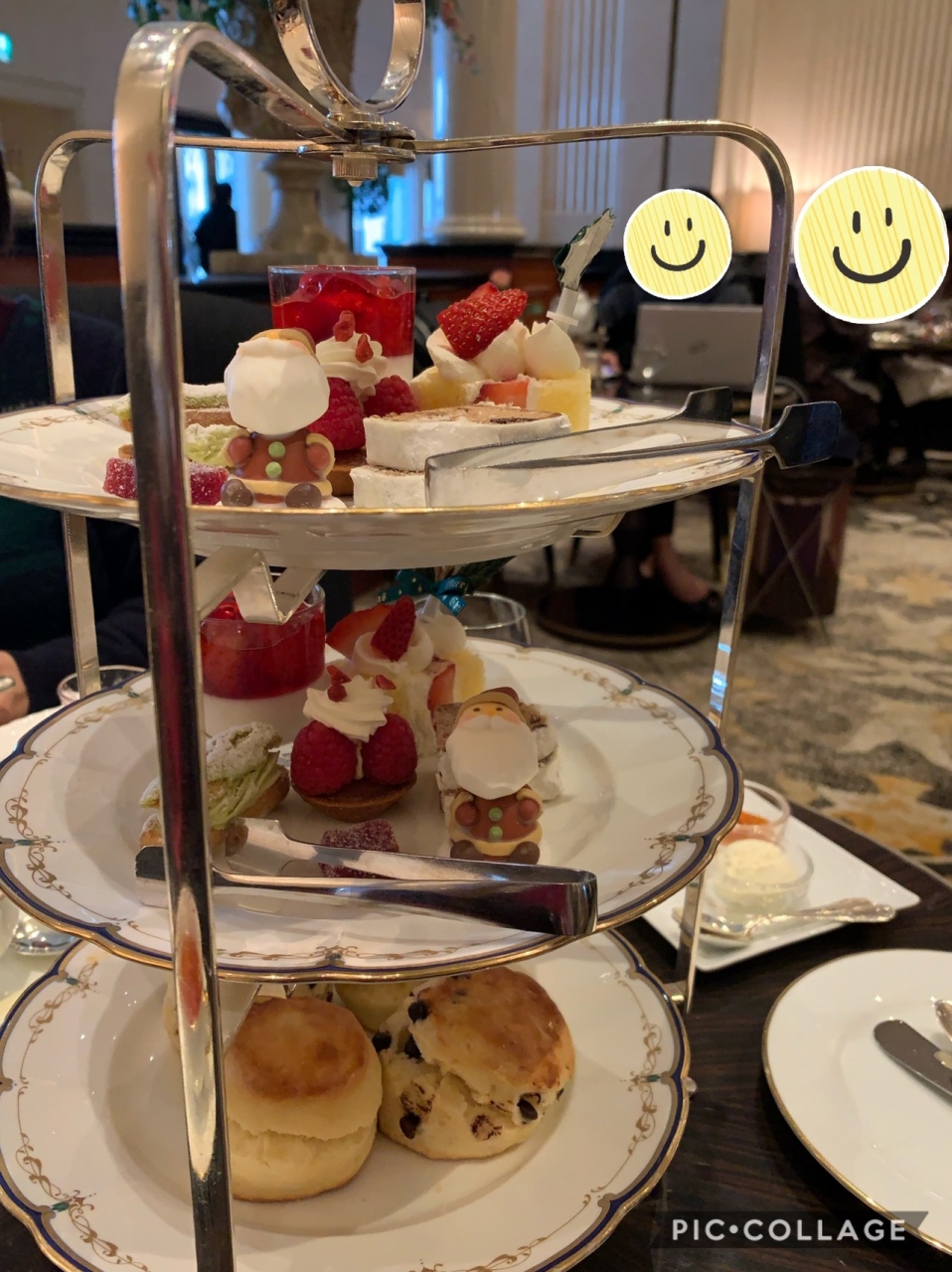 前菜、スイーツ、スコーンと、三皿に分かれていました。料理の説明も丁寧にして頂き、気持ちよくアフターヌーンティーを楽しむことができました。
