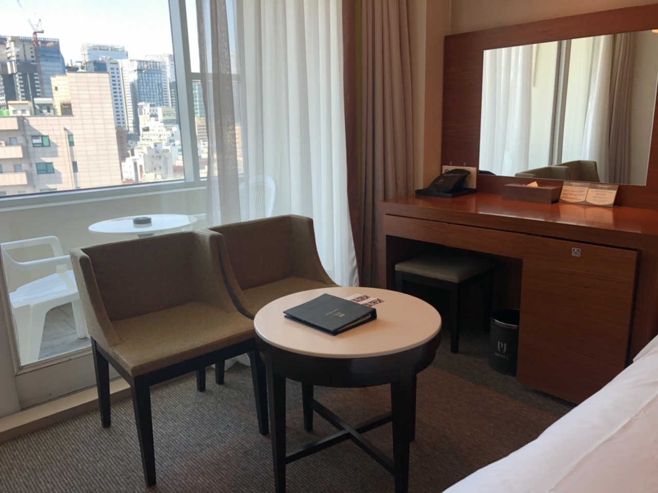 明洞までも15分くらいで歩くことができます。明洞や東大門にシャトルバスが出ているので、とても便利でした。お部屋は、2人で過ごすには充分な広さで、快適に過ごすことができました。
