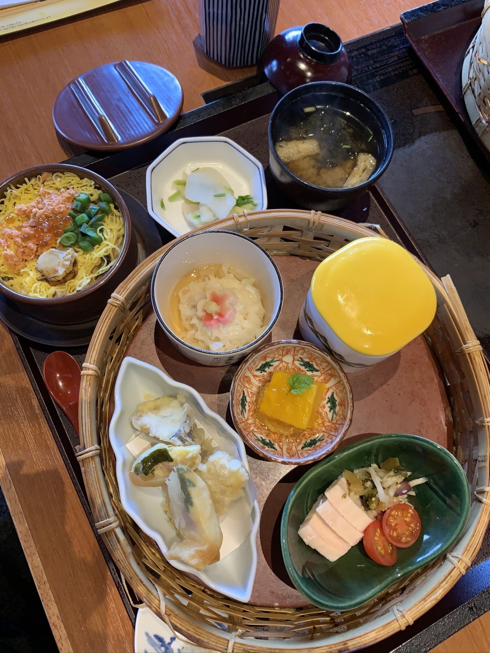 メニューに目を引くセットがあったので、迷わずそれをオーダーしました。いろいろなおかずが少しずつあって、目でも楽しめましたし、美味しかったです。- 旅行時期