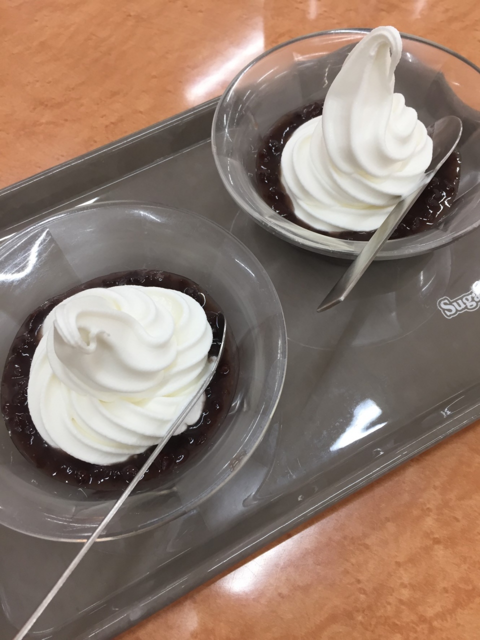 子どもの頃、実家に住んでいる時にはよく行ったスガキヤ。東京には無くてあきらめていました。今回、修善寺温泉に行く途中にアピタにあるよ!と夫が見つけてくれて、クリームぜんざいを食べるためだけに寄りました!私にとって、懐かしい味です!