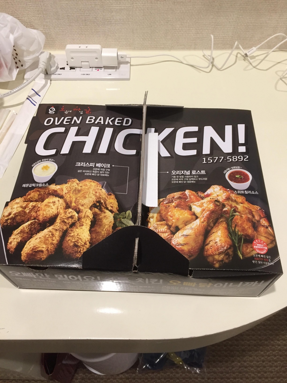 「1時間後に取りに来るからお願いします!」と支払いを済ませて、用事を終えて取りに行きました。お店の奥からアツアツの箱が運ばれてきました。味付けやソースも選べました。カリカリっと揚がっていて美味しかったてす。水キムチと小さなコーラが付いていました。