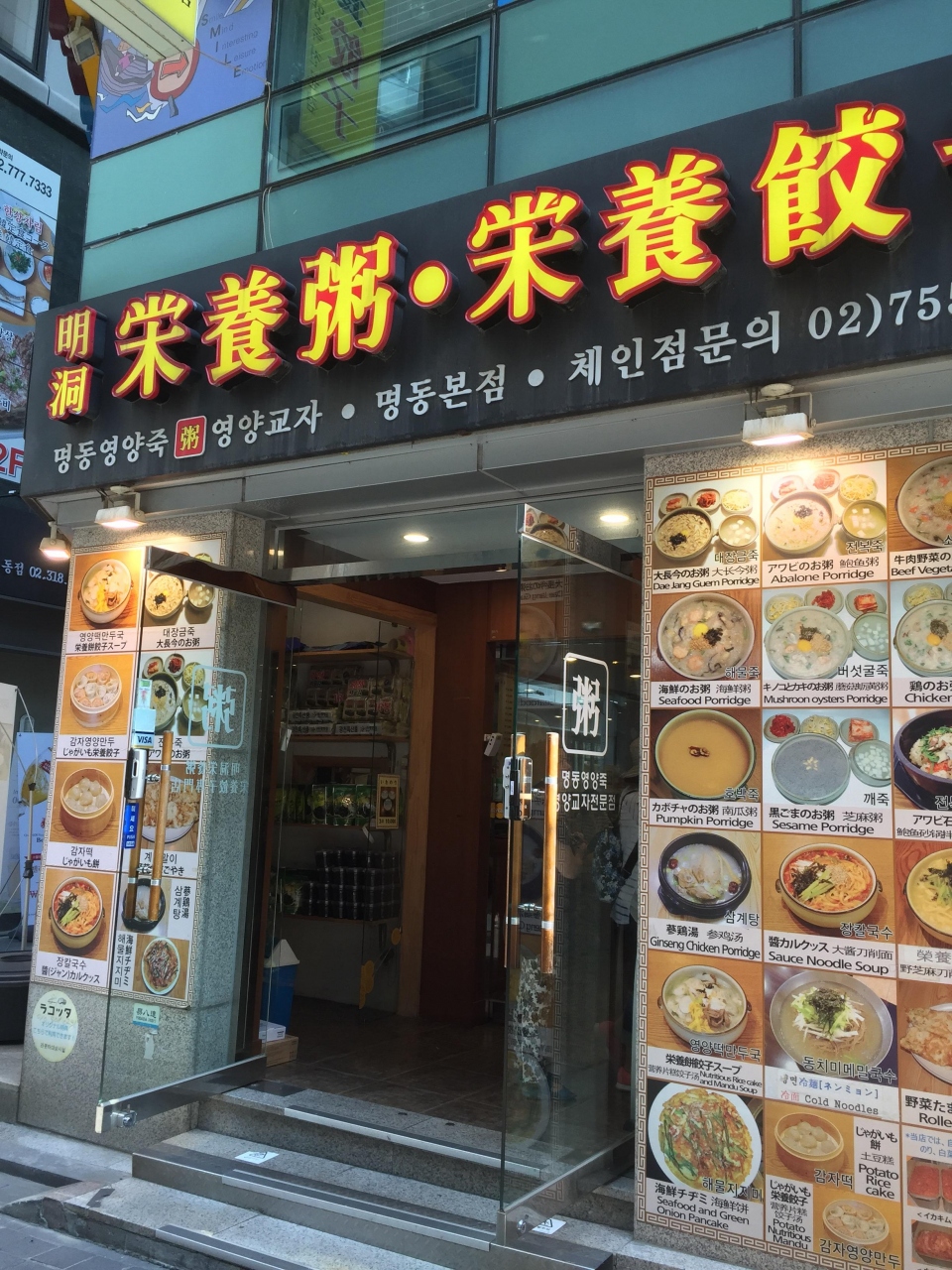 オススメのお粥屋さんです。お粥だけではなくて、マンドゥも美味しいです!三人で一人前をシェアしました。一緒に出てくるおかずも美味しいです。海苔も美味しくて、お土産用にパッケージされた物が売っていました。お粥は野菜粥を頂きました。