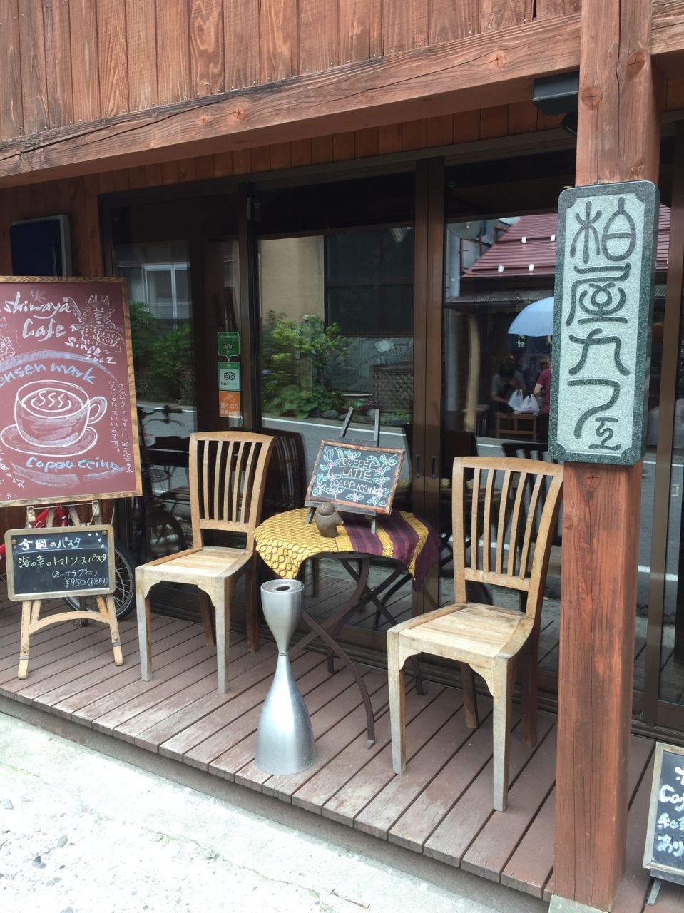 旅館をチェックアウトしたあとに、お茶しに寄りました。川沿いの無料駐車場から歩いてすぐでした。飲み物以外にも、食事もできるようでした。二階もあるので、見た感じよりは、広々としていました。四万温泉名物温泉マークカプチーノを頂きました。美味しかったです!