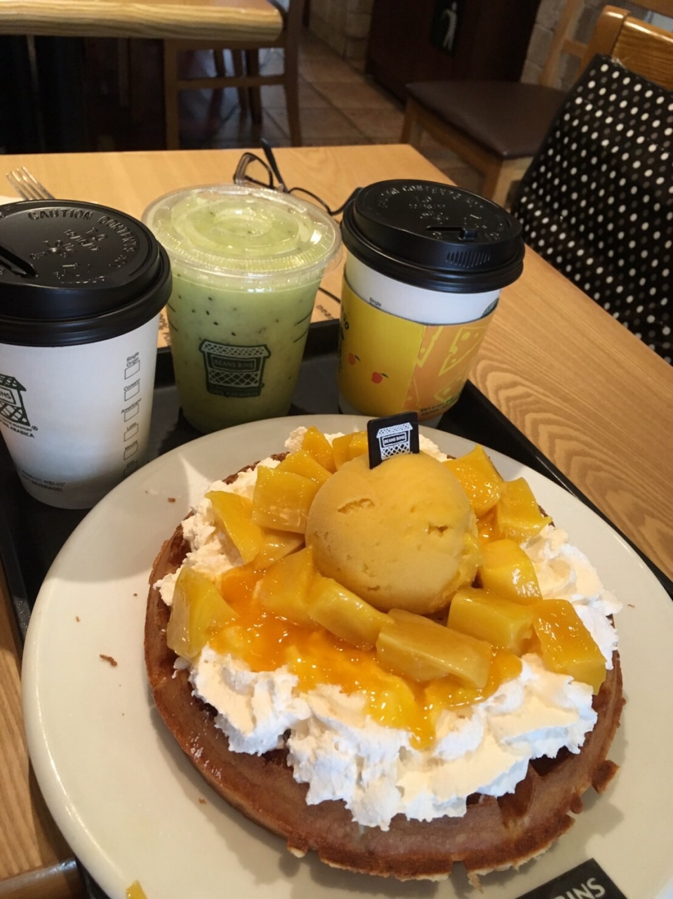 サボイホテル2階にあるので、買い物途中に気軽に立ち寄ることができます。席もたくさんあるので、好みの席を見つけましょう。ワッフルが出来上がるまで15~30分くらい待つこともありますが、オーダーする時に、予めの待ち時間を教えてくれたので、FREEWi-Fi利用してのんびり待つことができました。甘すぎず美味しいワッフルです!