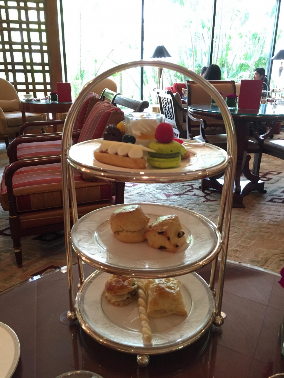 マーライオンパークへ行った帰りに、近くのフラトンホテル内のここでアフタヌーンティーを頂きました。平日で混んでいなかったこともあり、予約時間より早く着いてしまったのですが、すぐに席に案内されました。中国風な三段トレーに、ケーキやサンドイッチ、パイなどがたっぷり並んでいます。別皿で、温められたスコーンもサーブされます。どれも美味しくて、読書をしながらゆったりできました。