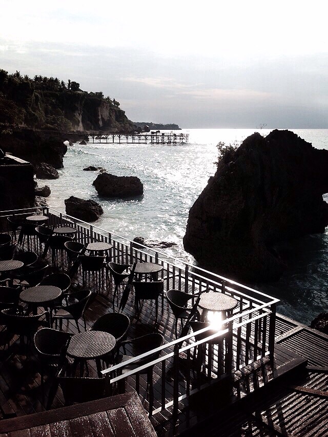 海に近いところで綺麗な夕陽が見られるとのことで、一度行ってみたかったのでした。リンバジンバランに泊まったので、ゴンドラに乗るのに優先レーンがありました。夕陽の時間まで、貸してくれる傘をさして、暑い中ひたすら待ちました。飲み物や食べ物は、あまりお安くはありませんが、あの雰囲気代金、景色代金も込みならいいかな!