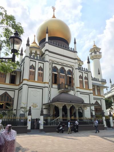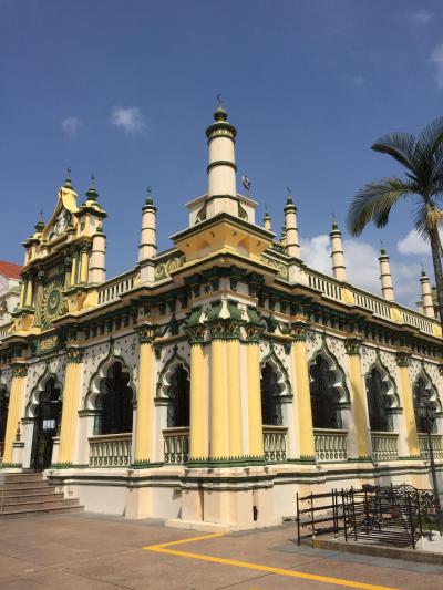 リトルインディアから歩いて行きました。駅を降りると、ここはインド?と思うくらい、インド人エリアでした。門をくぐると、靴を脱ぐよう注意書きがありました。靴を脱いで、少し敷地内に入れます。緑と黄色のモスクは、細工が細かくて綺麗なデザインです。星の模様も付いていて、可愛いらしさもあります。