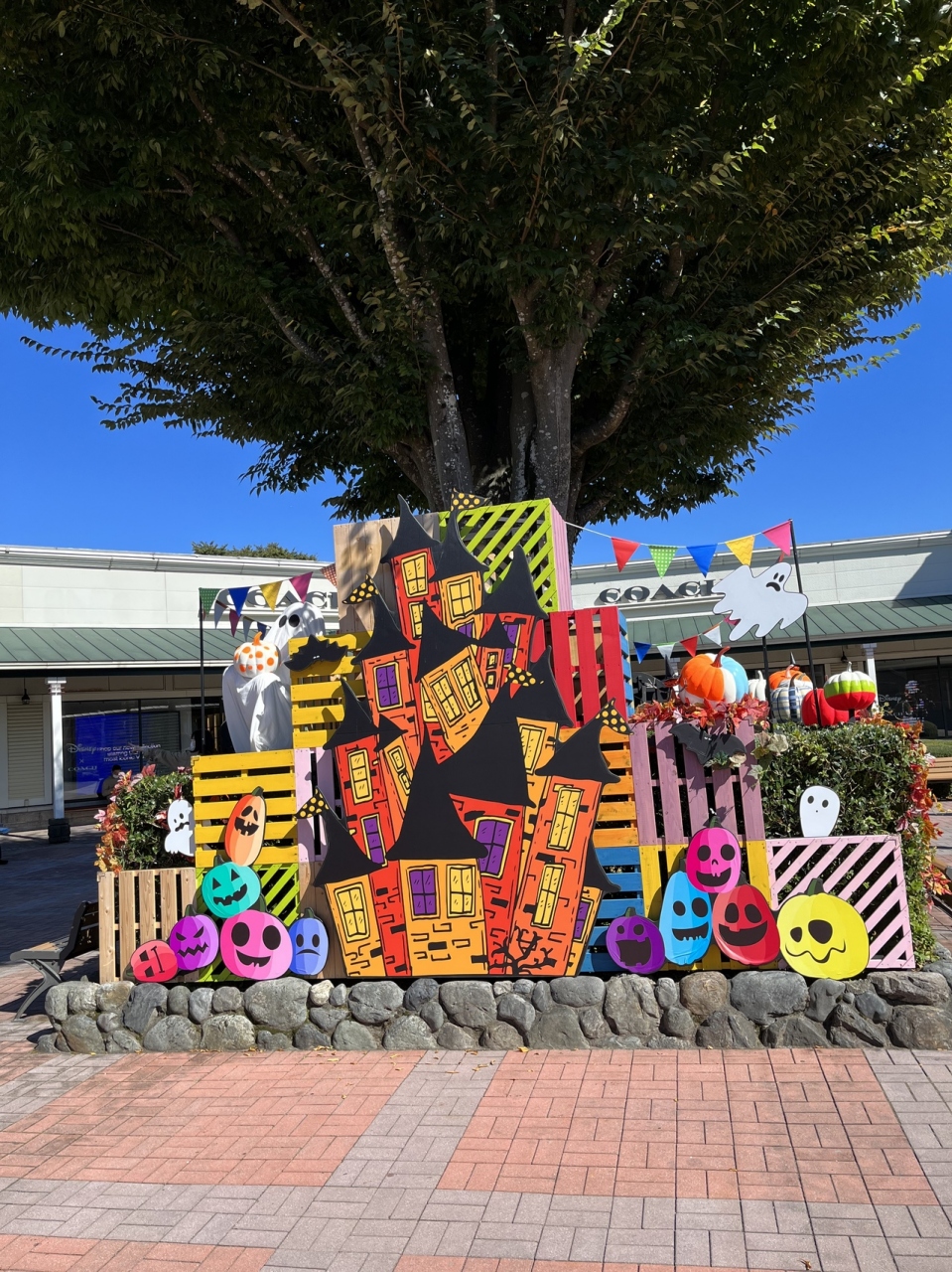 シーズンごとにいろいろな飾り付けがされる御殿場プレミアムアウトレット!あちらこちらに、ハロウィンらしく、かぼちゃやこうもりなどが飾られていて、雰囲気を盛り上げてくれています。買い物しなくても、楽しい感じです。